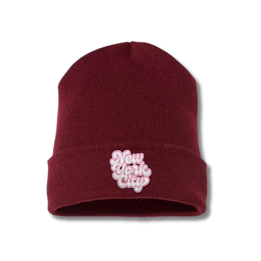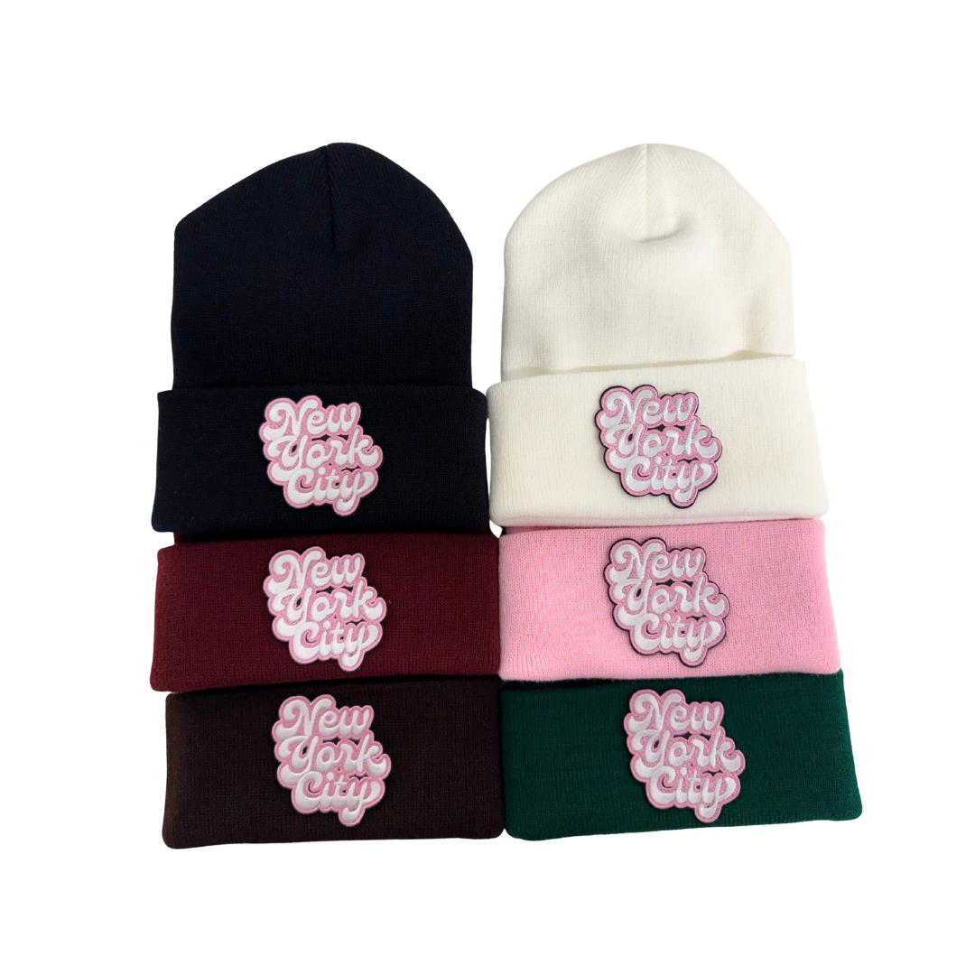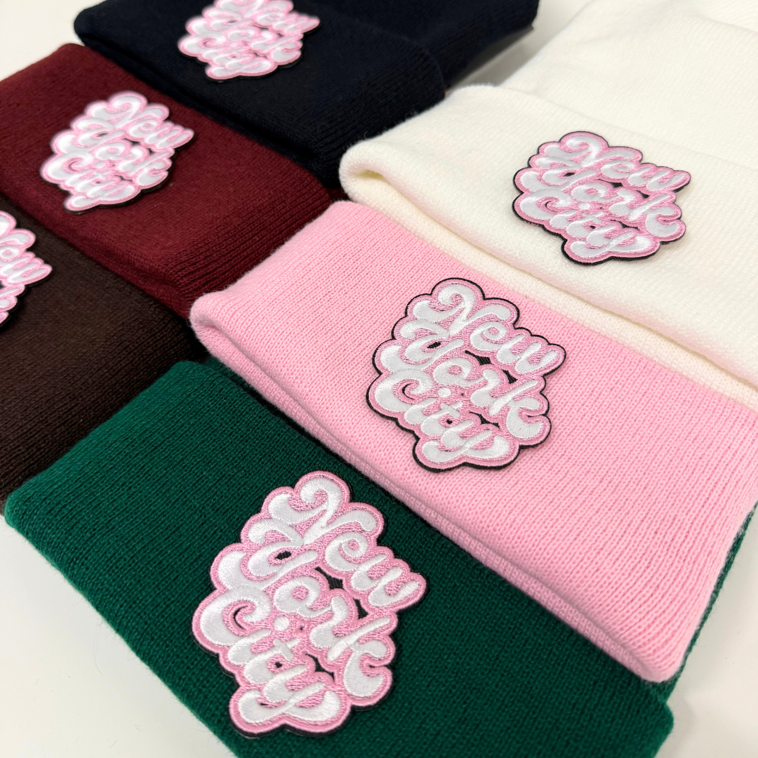 New York Pink Beanie | Custom Patch | Made in NYC | Comfy Beanie