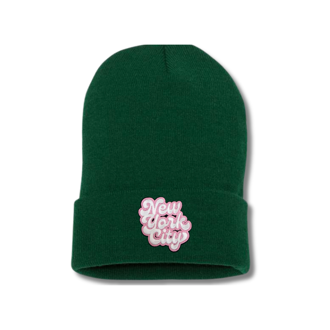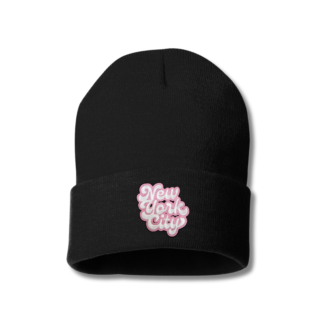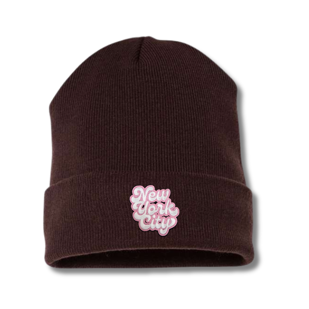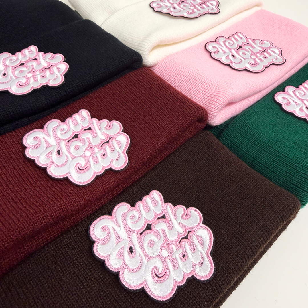 New York Pink Beanie | Custom Patch | Made in NYC | Comfy Beanie