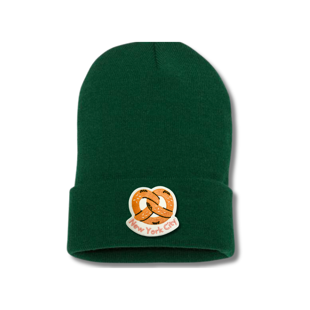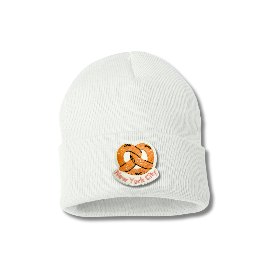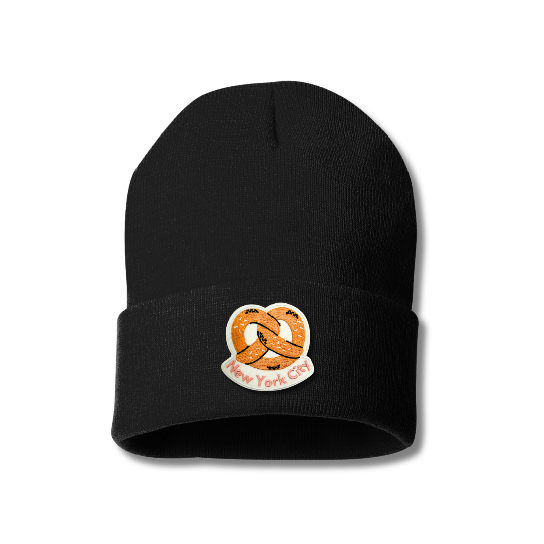 Stay cozy with a slice of NYC pride! This playful beanie features a custom Pretzel patch that celebrates the Big Apple's iconic street food culture. Whether you're braving the cold or just want to rep your favorite city, this soft, snug beanie keeps your head warm while showing off your love for all things NYC. A fun accessory that's as genuine as a fresh pretzel from the corner cart.