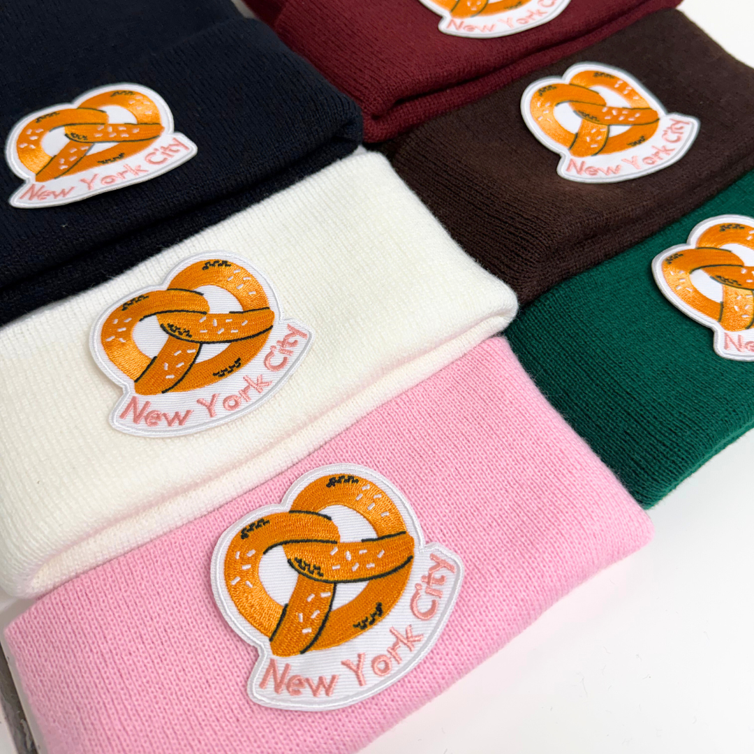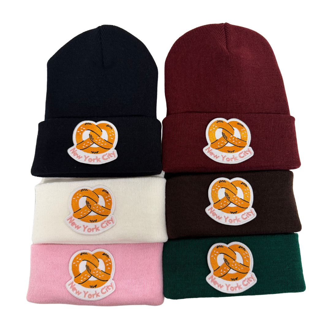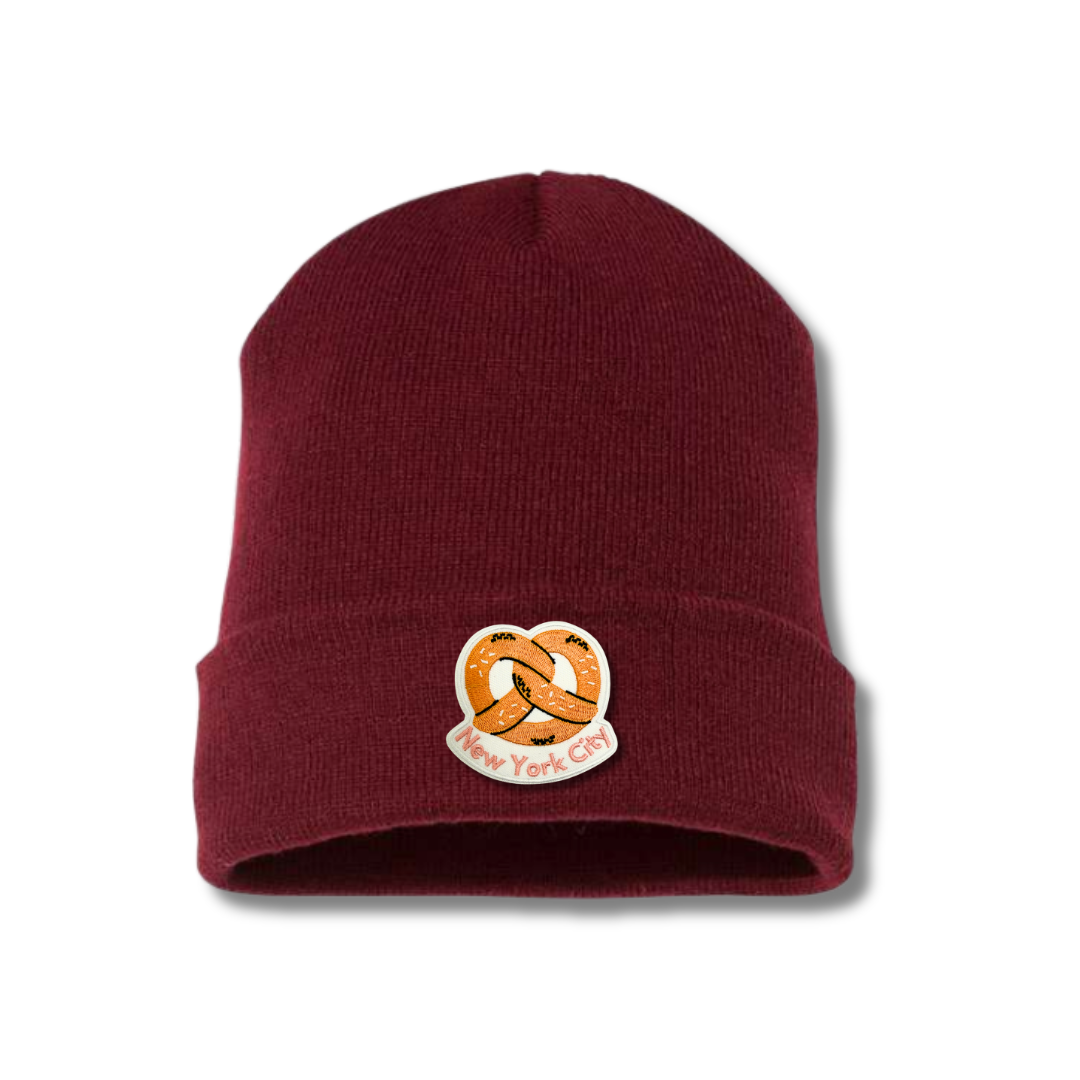 Stay cozy with a slice of NYC pride! This playful beanie features a custom Pretzel patch that celebrates the Big Apple's iconic street food culture. Whether you're braving the cold or just want to rep your favorite city, this soft, snug beanie keeps your head warm while showing off your love for all things NYC. A fun accessory that's as genuine as a fresh pretzel from the corner cart.