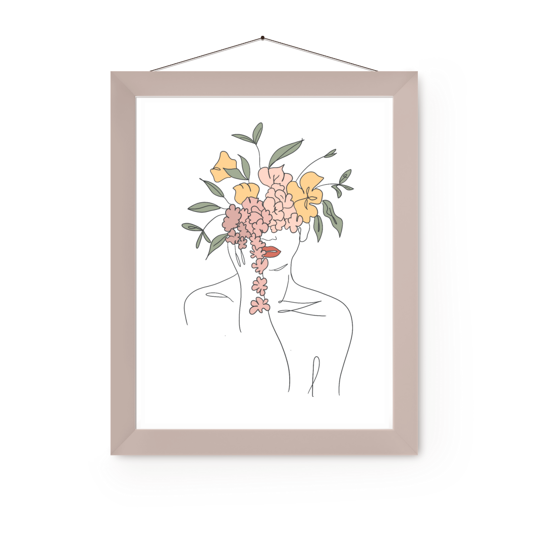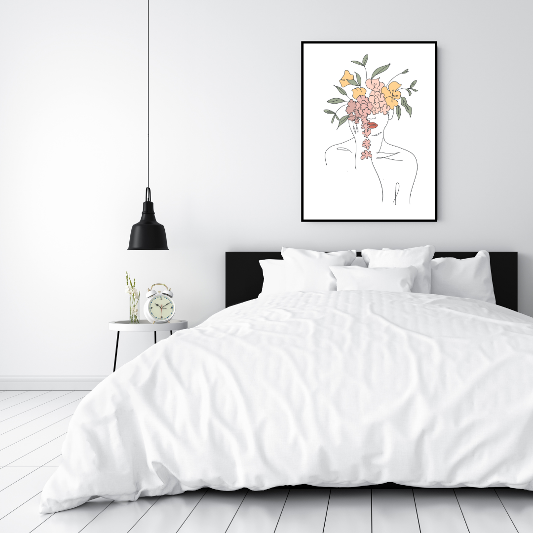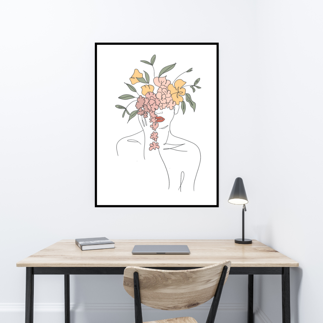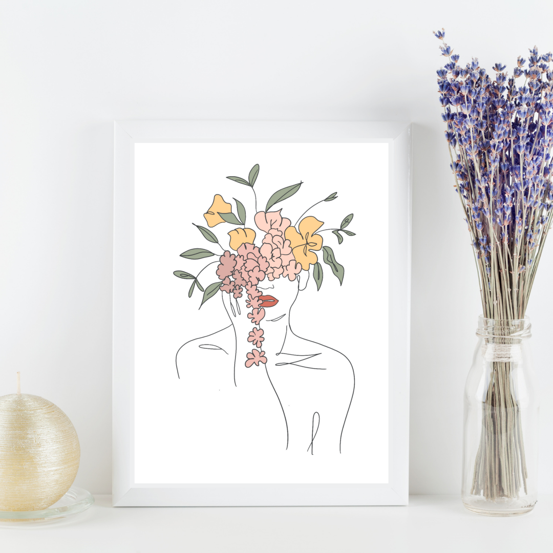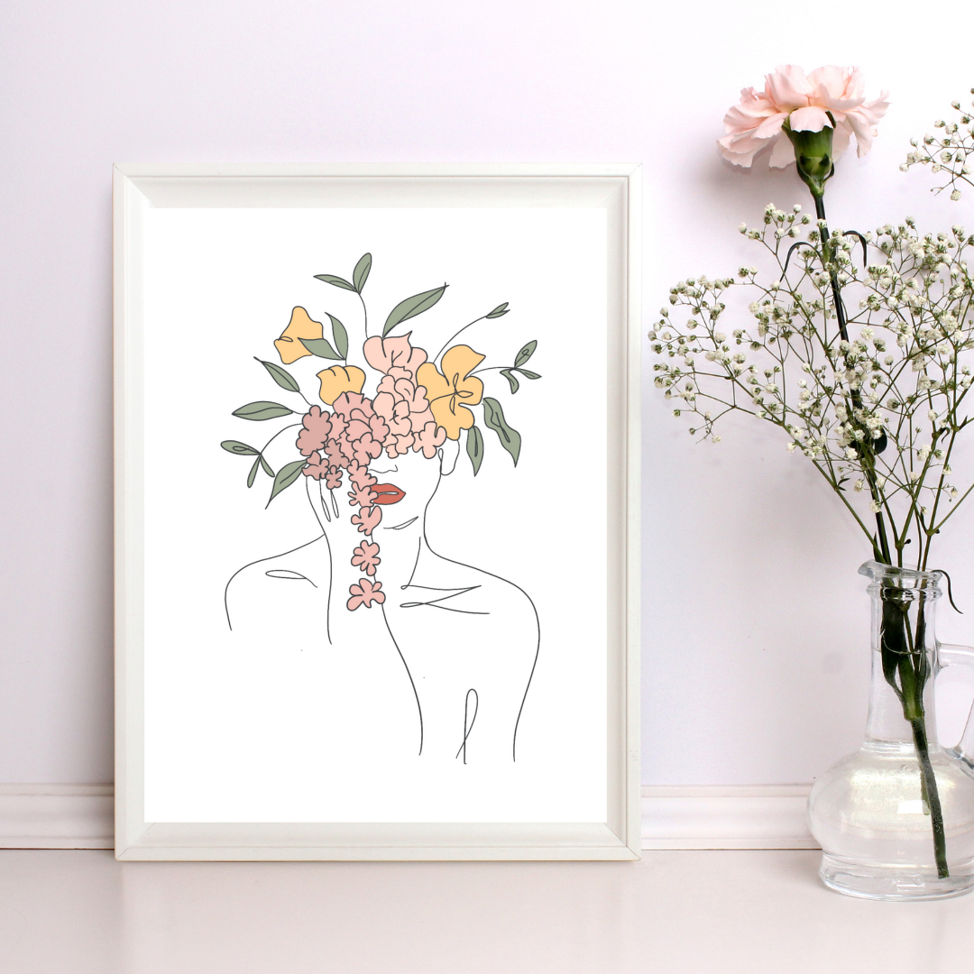 Floral Girl Minimalist Art Print | Home Decor | Minimalist Drawing | Room Ideas | Flowers Art