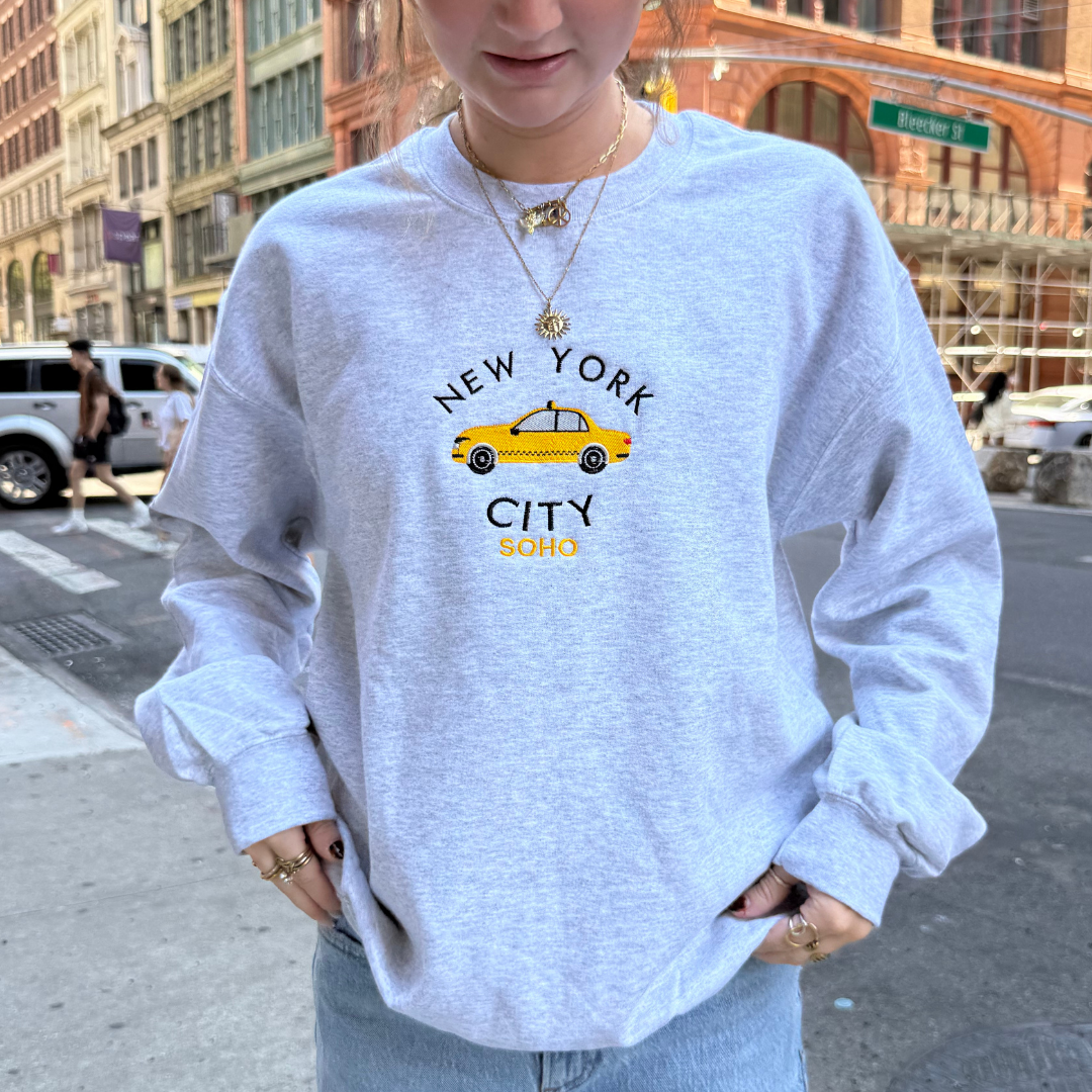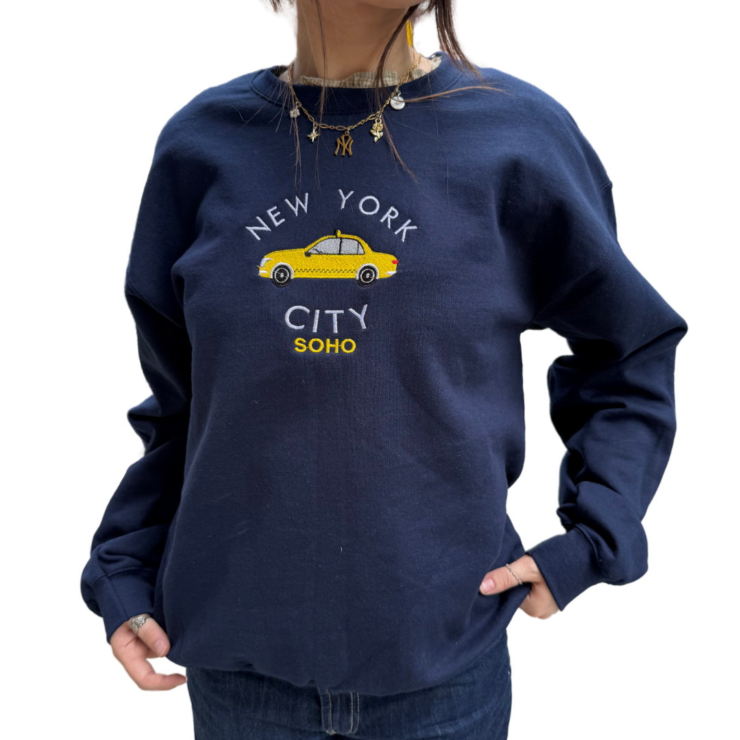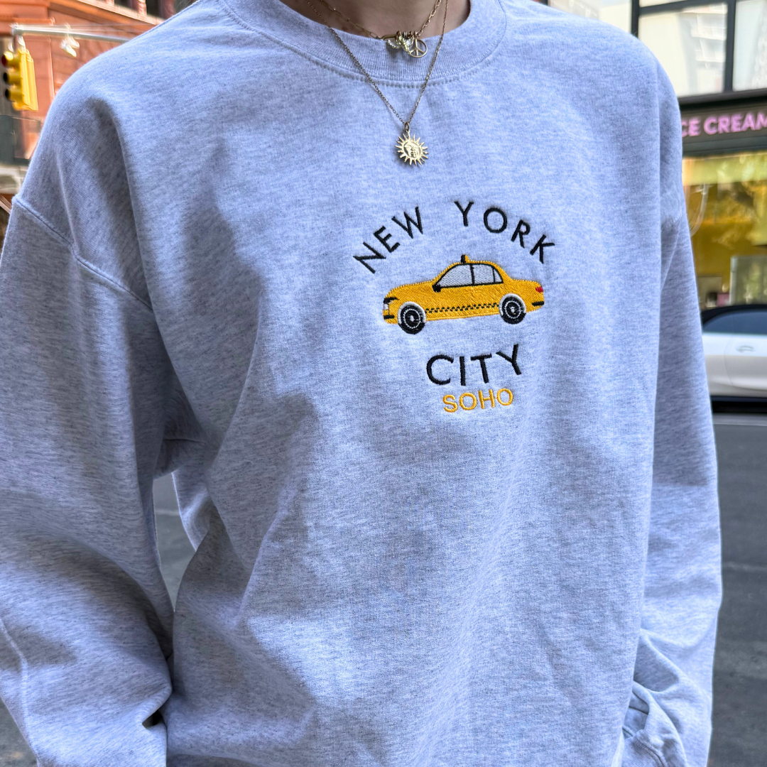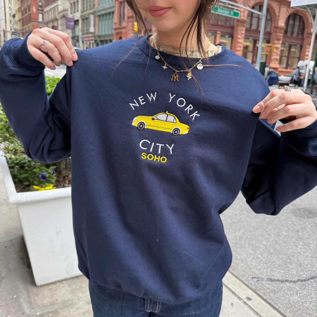 Regular price $75.00Introducing our new Embroidered New York City Taxi Crewneck, a classic sweater handmade with love in NYC. Its unique color combo of yellow, black, and white is sure to turn heads – and hearts! So cozy you won't want to take it off, it's perfect for fall days spent strolling through Soho and in the city!
