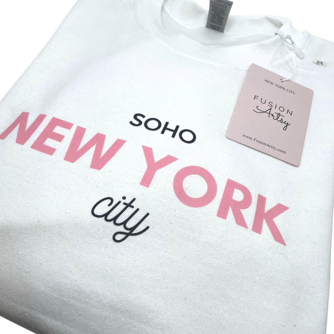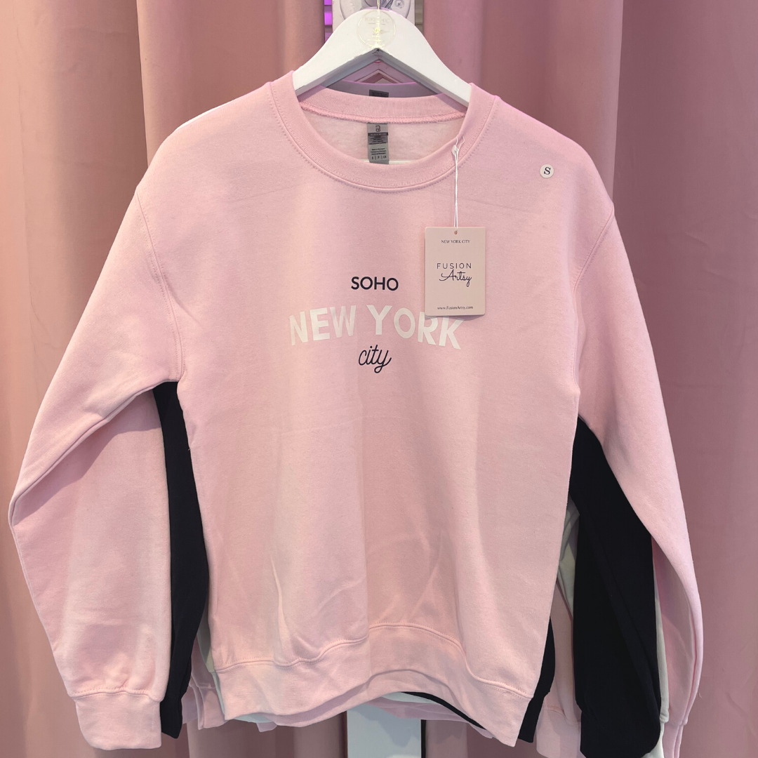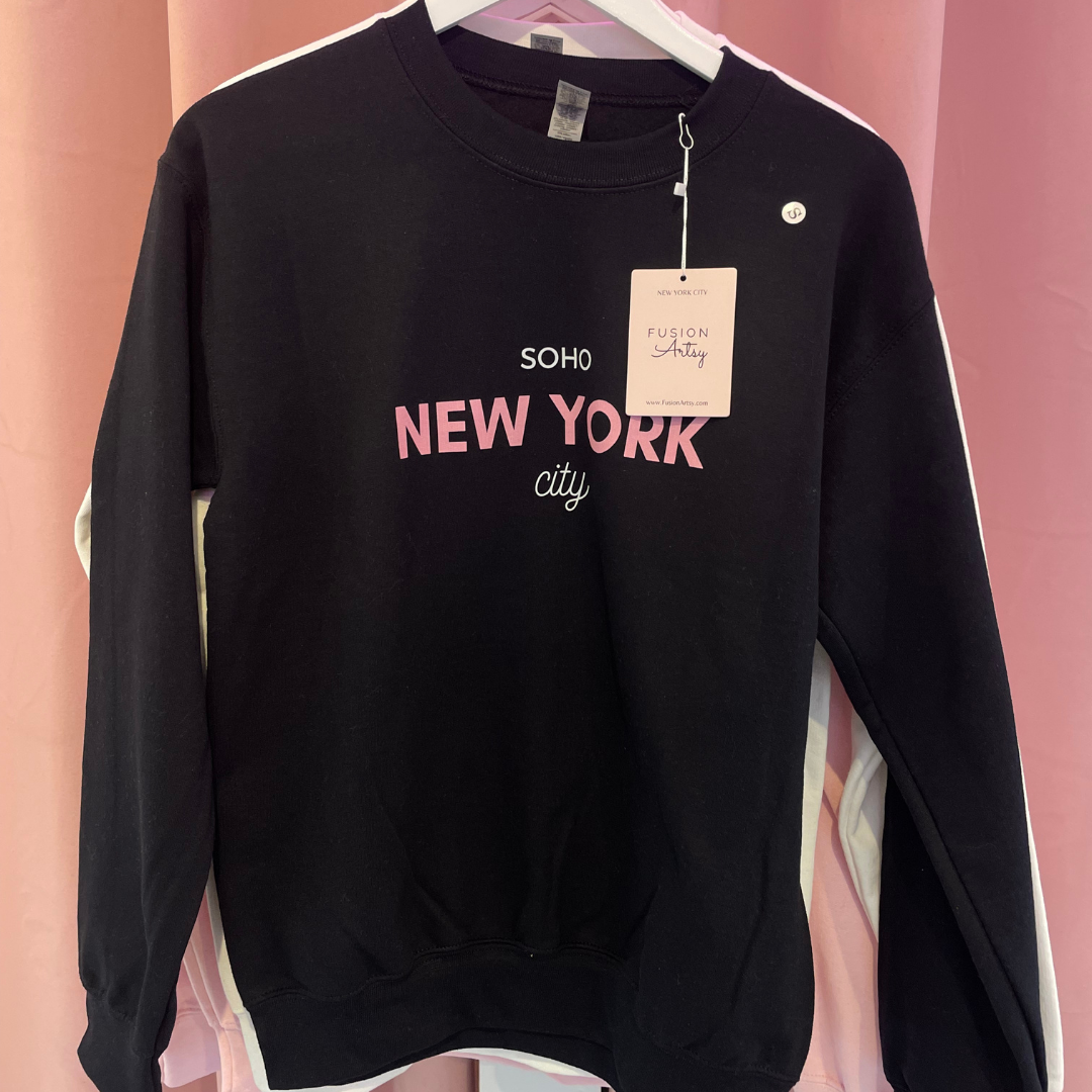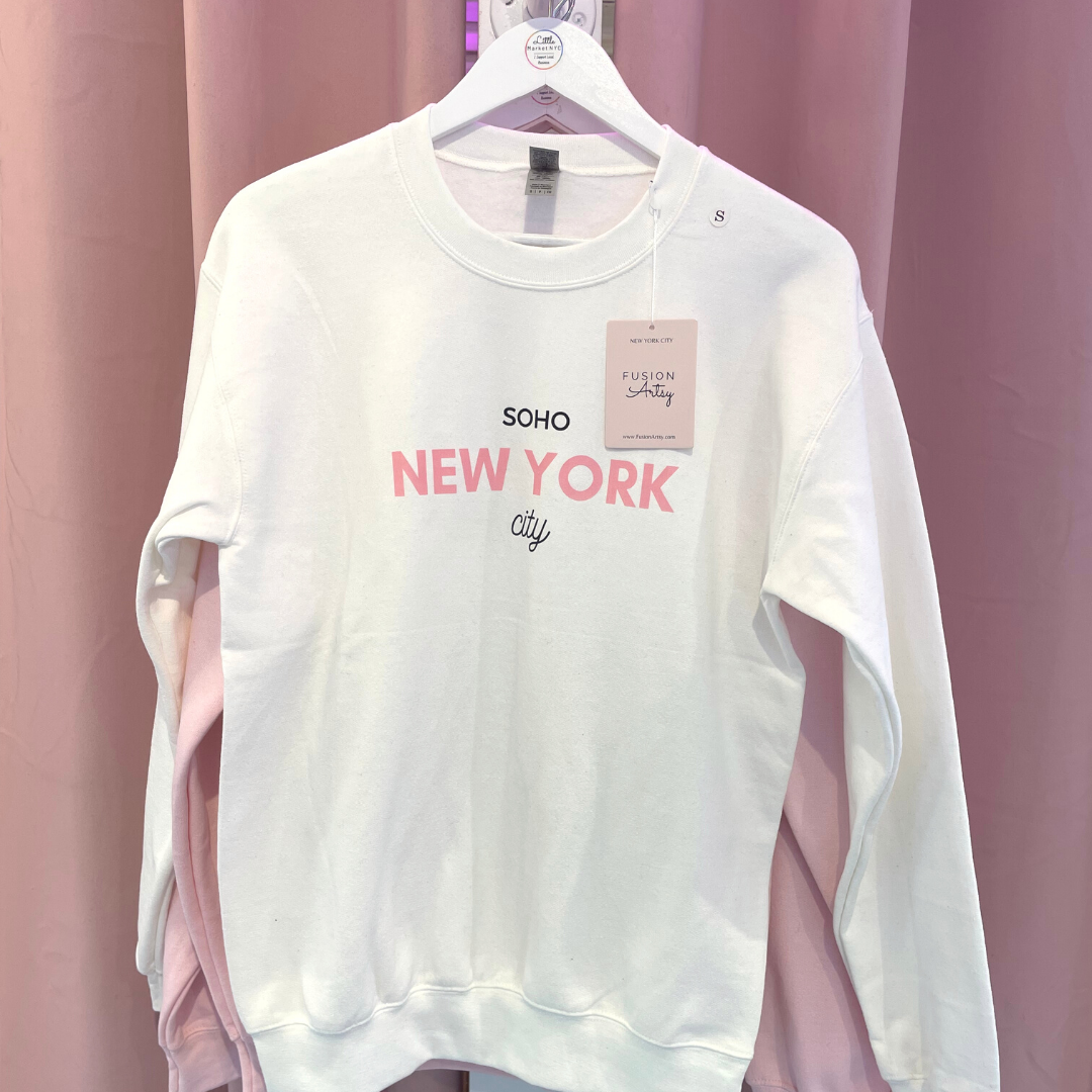Regular price $55.00Introducing the New York City Crewneck, a classic sweater handmade with love in NYC. Its unique color combo of white, pink, and black is sure to turn heads – and hearts! So cozy you won't want to take it off, it's perfect for fall days spent strolling through Soho and in the city!