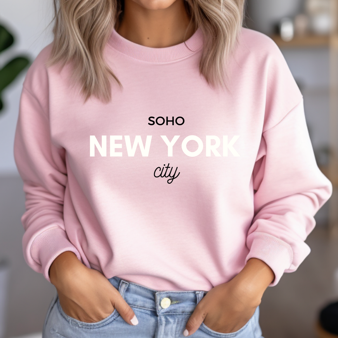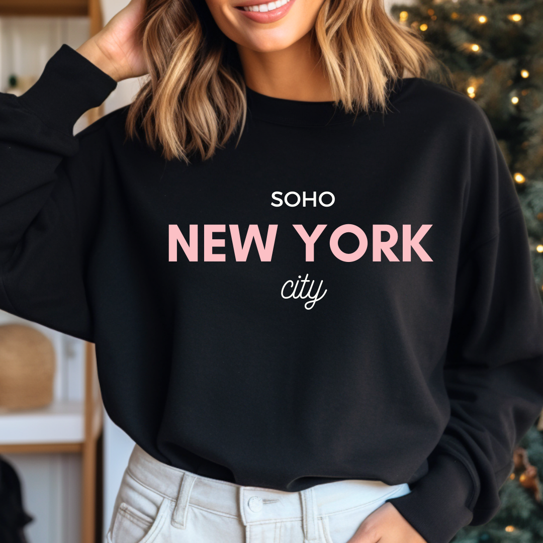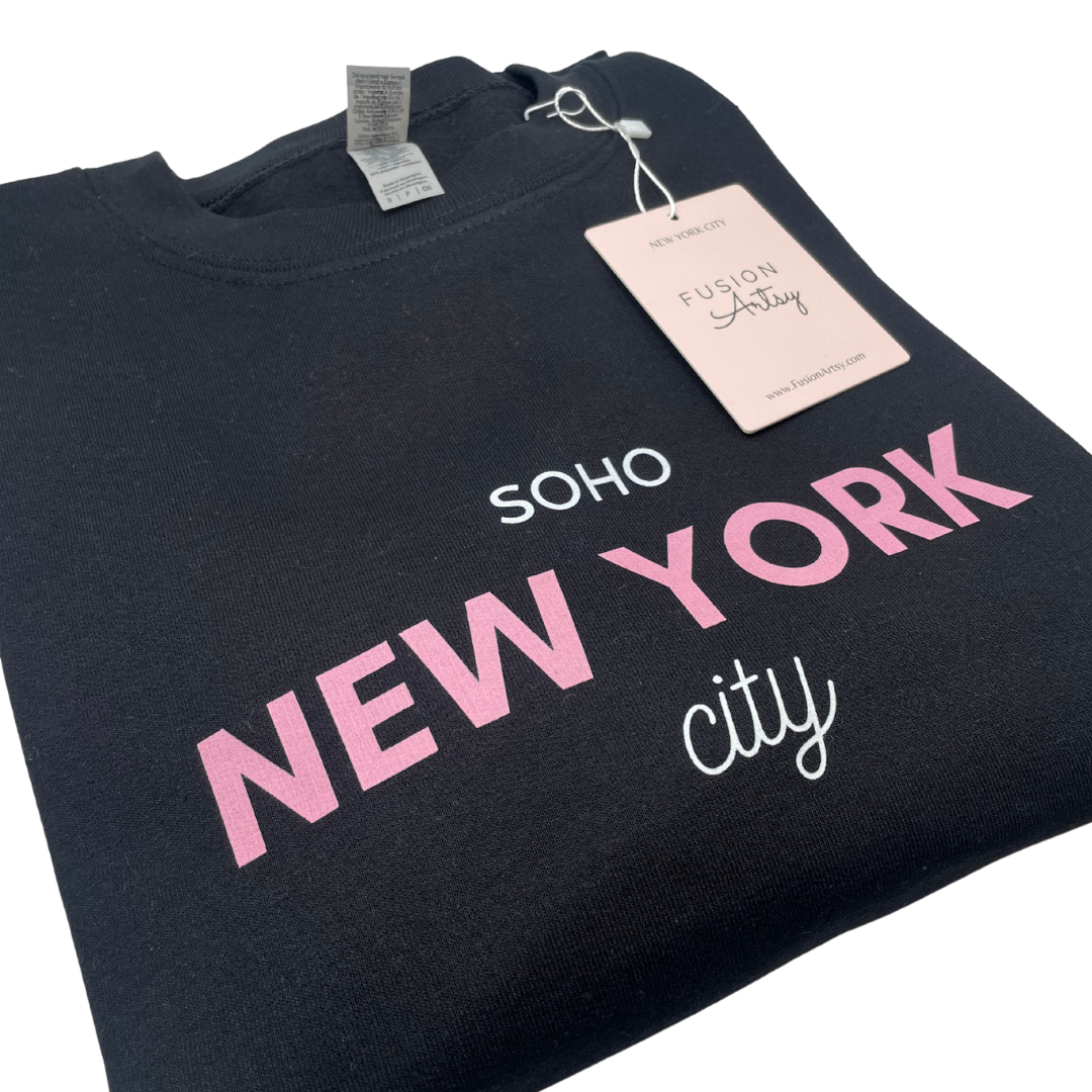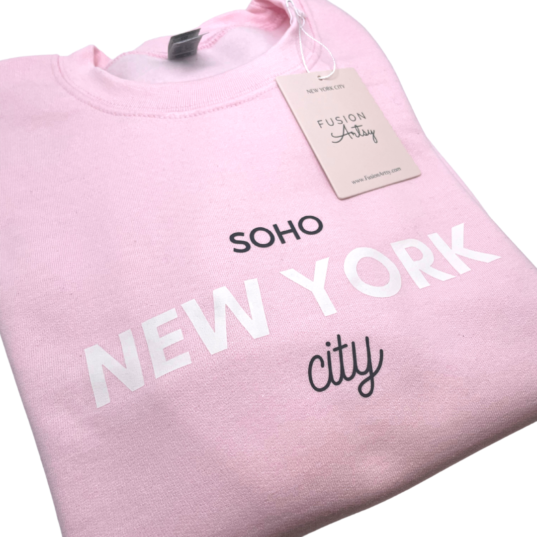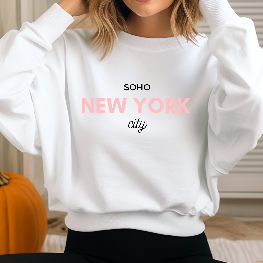 Regular price $55.00Introducing the New York City Crewneck, a classic sweater handmade with love in NYC. Its unique color combo of white, pink, and black is sure to turn heads – and hearts! So cozy you won't want to take it off, it's perfect for fall days spent strolling through Soho and in the city!