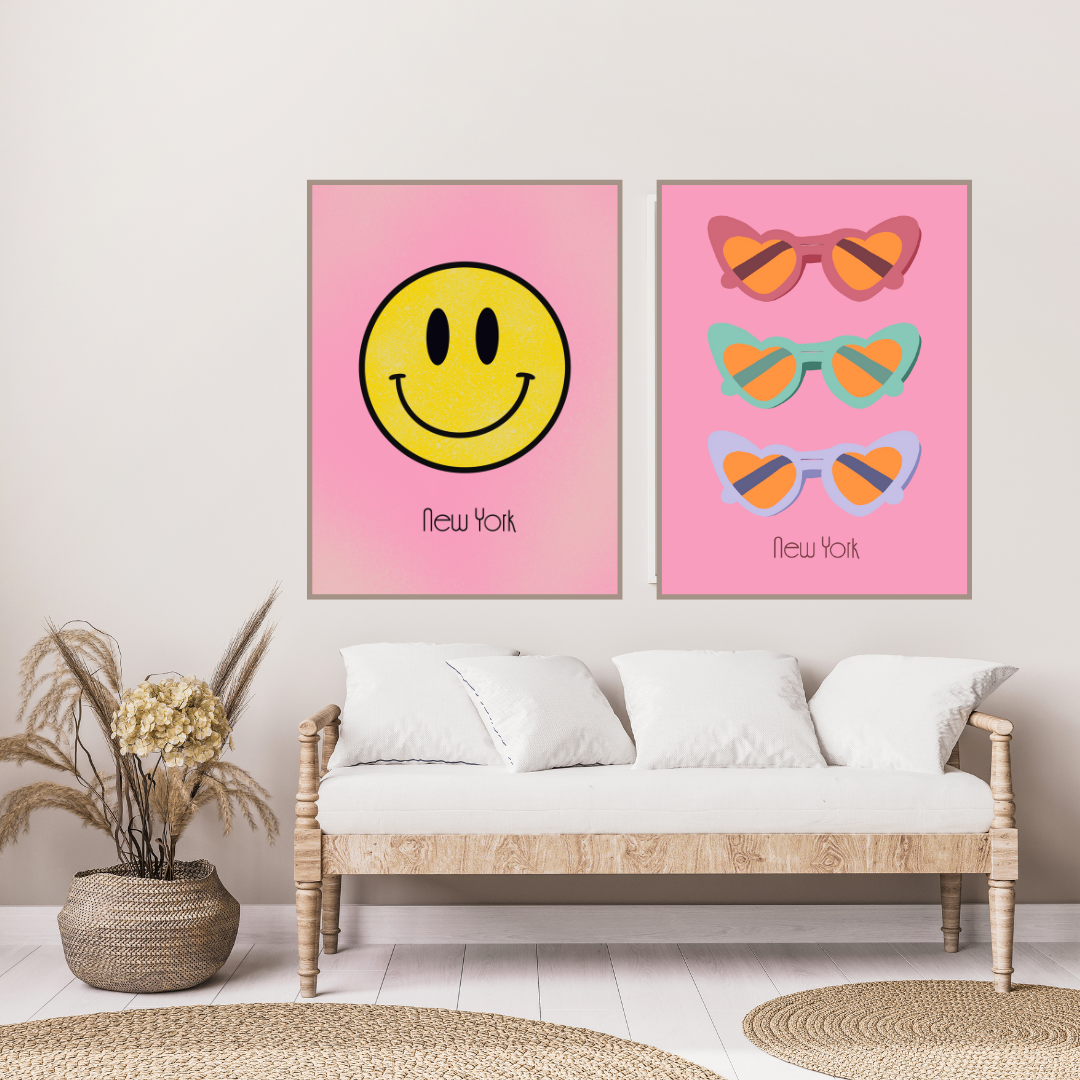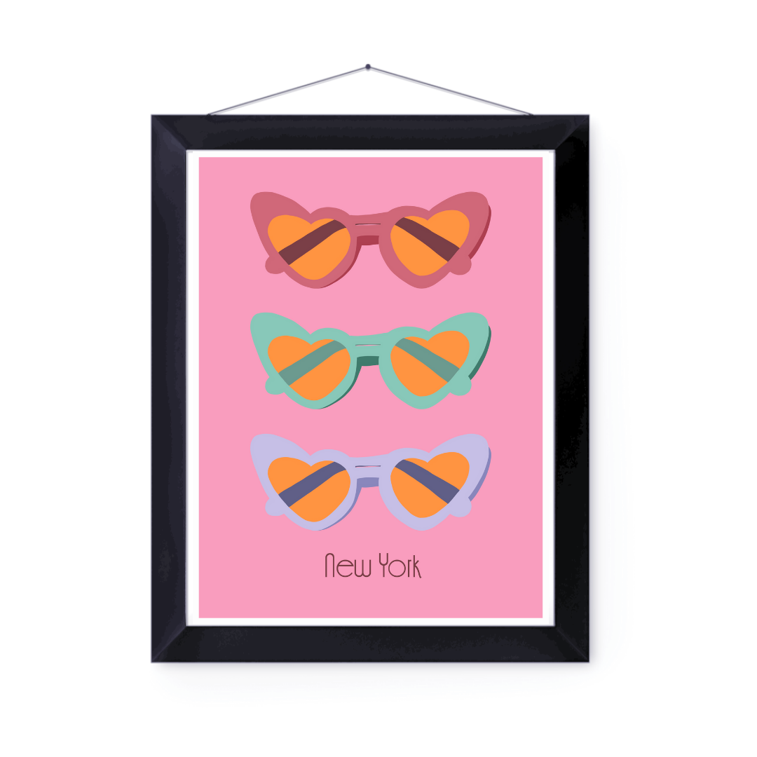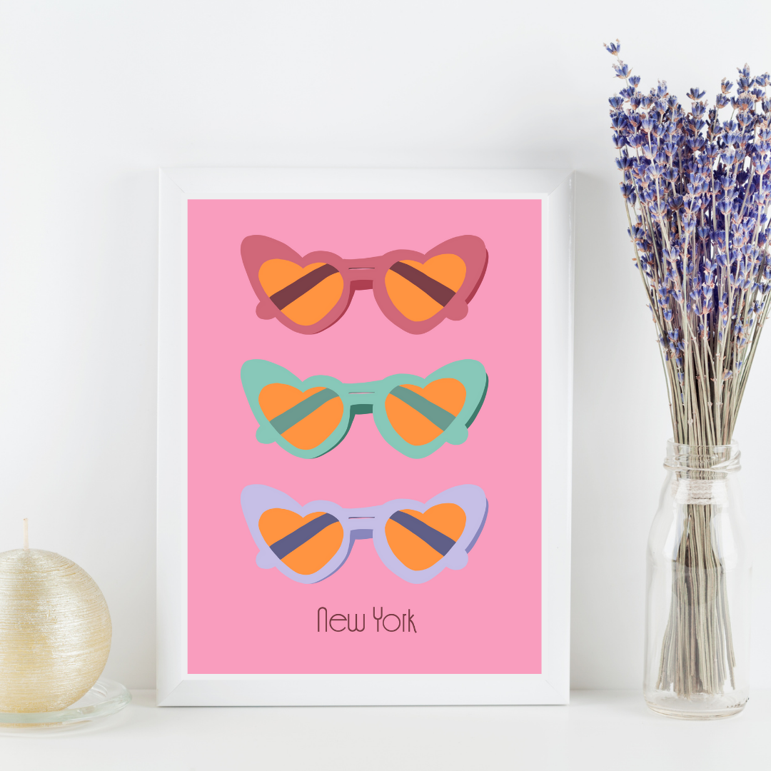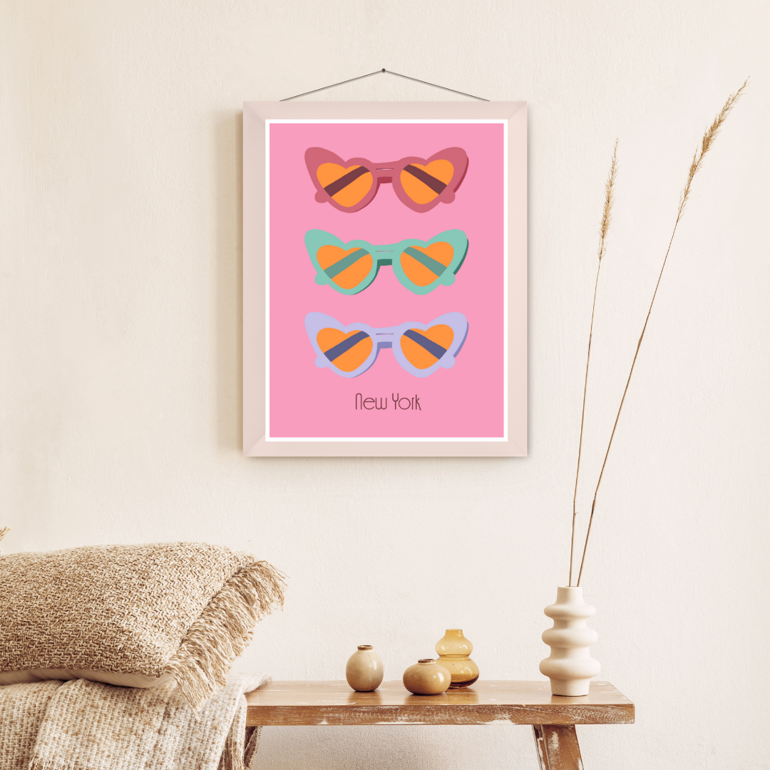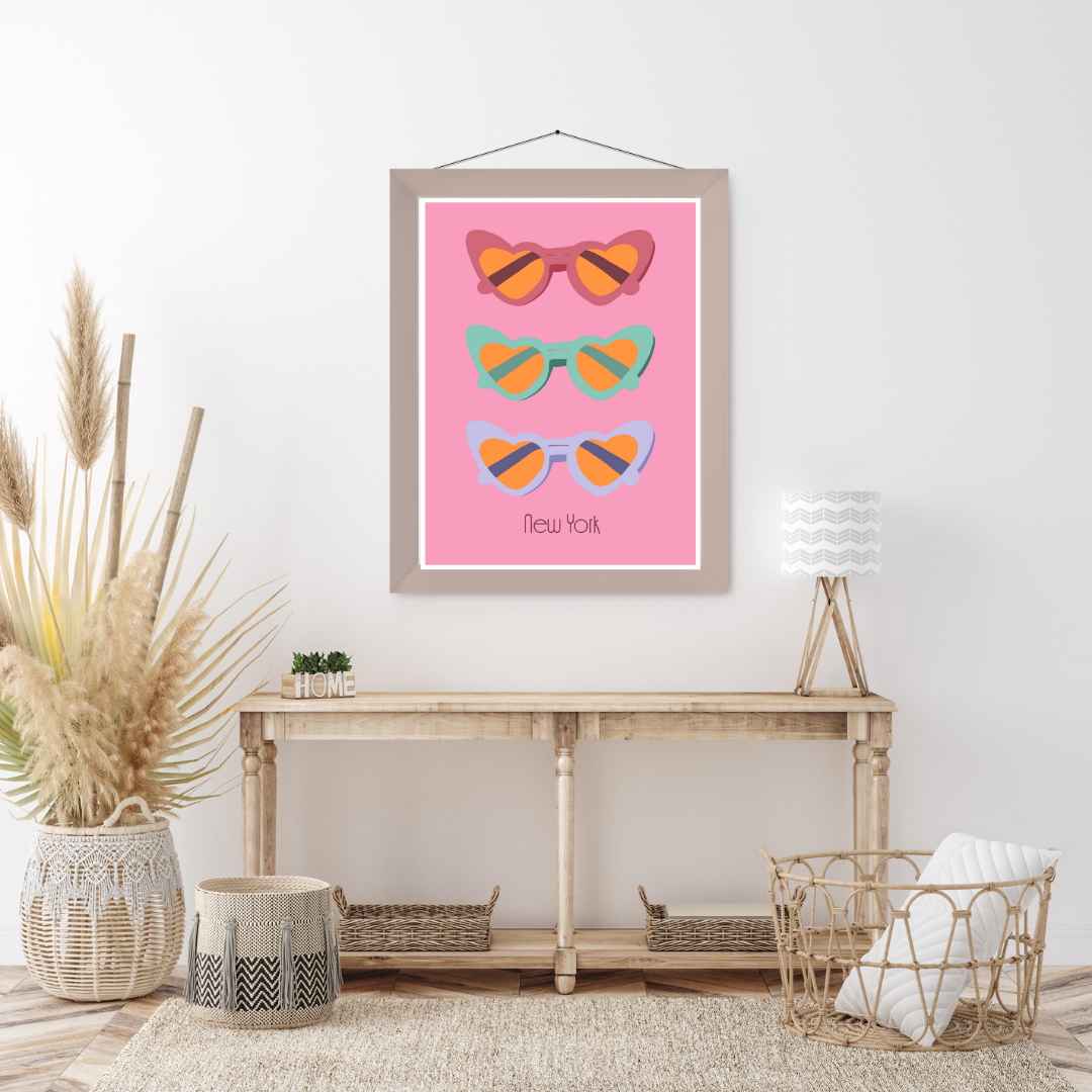 Sunglasses Heart Colorful Art Print | Preppy and Pink Collection