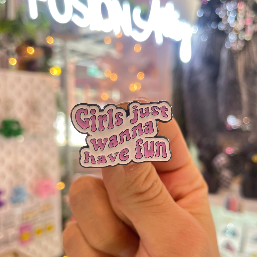 Girls Just Want to Have Fun Pin is perfect for adding a playful, sassy touch to your wardrobe! It's a great conversation starter and will show off your sense of humor. And best of all, it's a cute, fashionable design that will never go out of style!