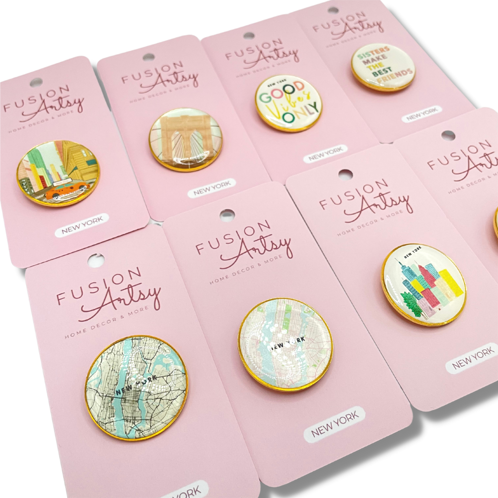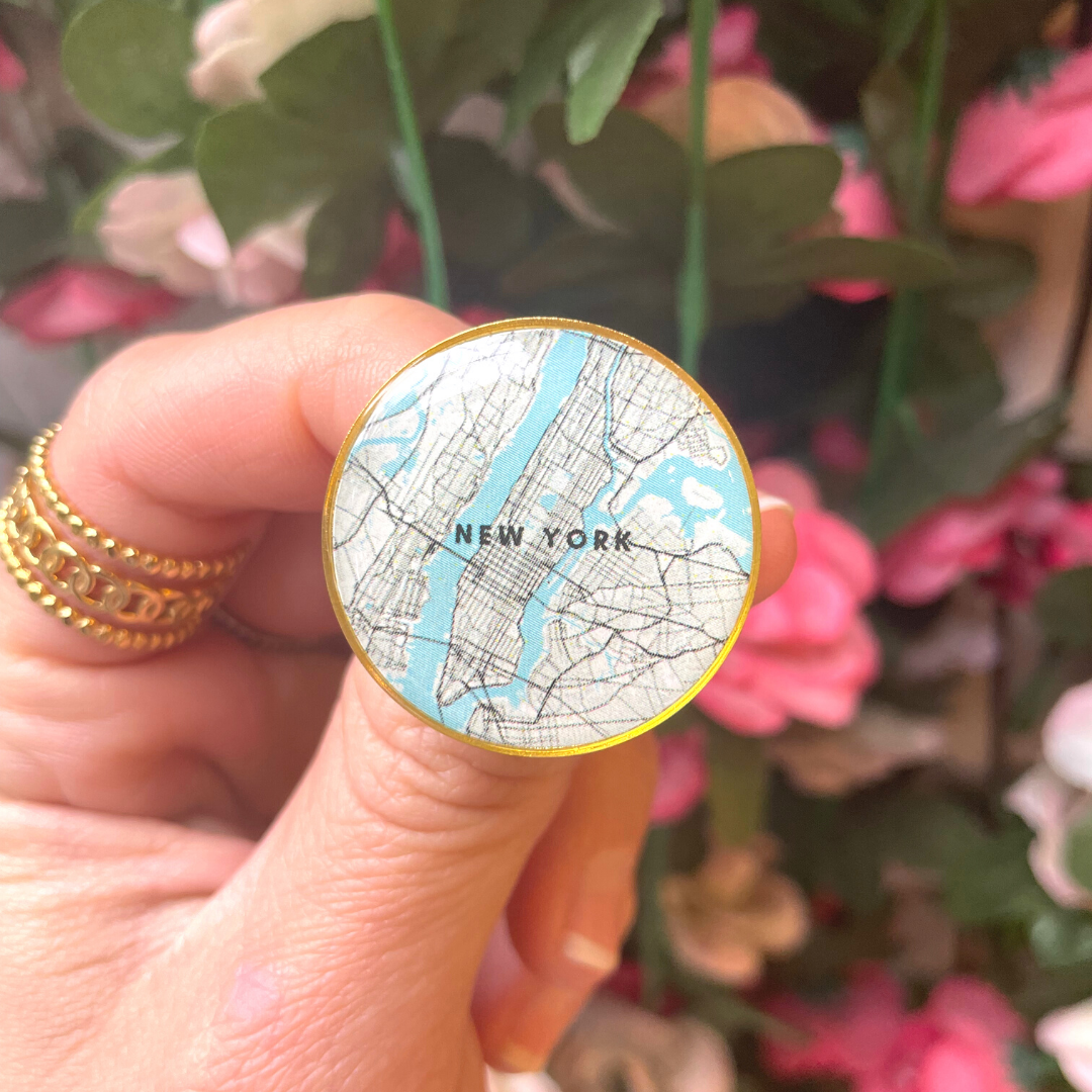 This New York City Blue Map Gold Pin is the perfect addition to your collection! Show off your NYC pride by pinning it to your bag, jacket, or any piece of clothing. Get ready to explore the city in style!