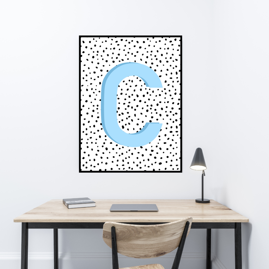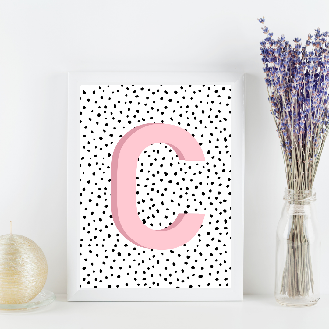 Initial Letter C Art Print | First Letter | Name Print | Dots Art Print | Cute Room Ideas