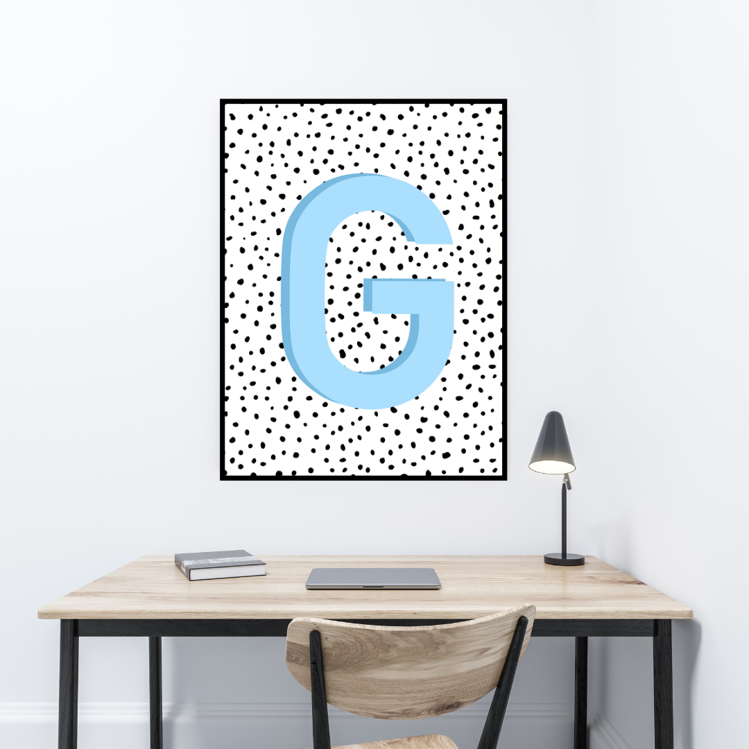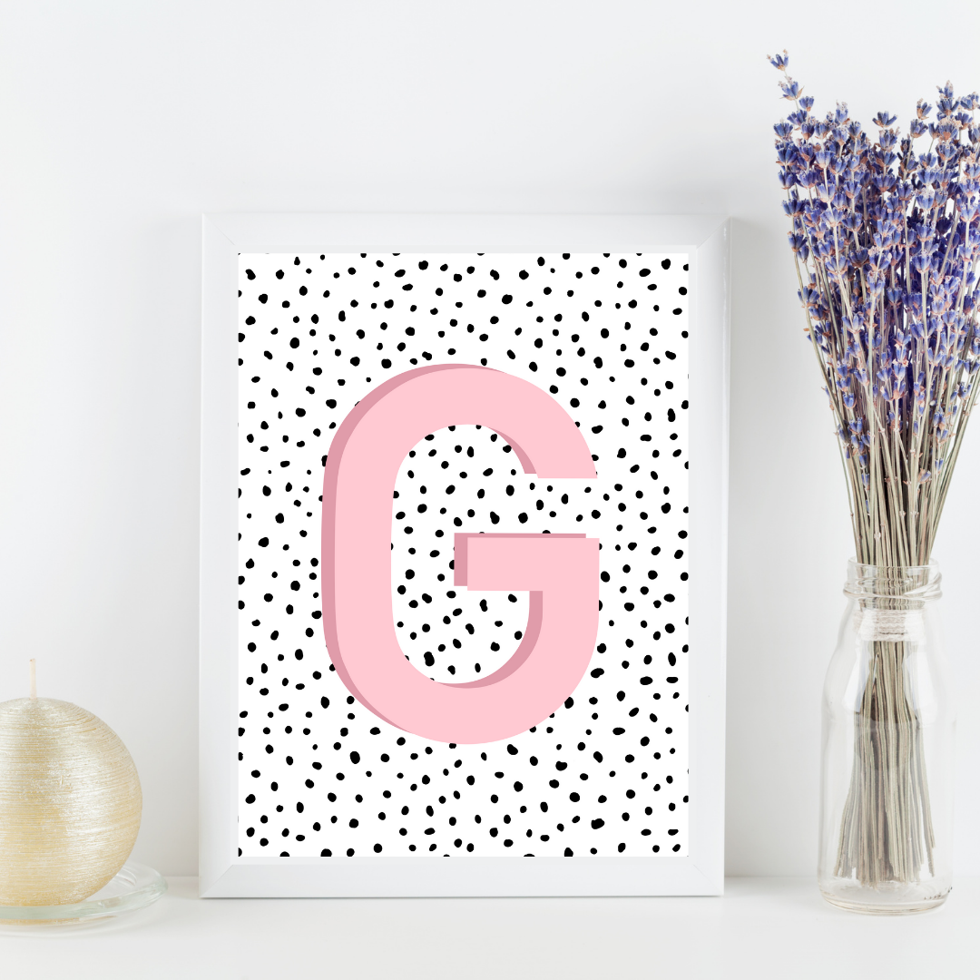 Initial Letter G Art Print | First Letter | Name Print | Dots Art Print | Cute Room Ideas