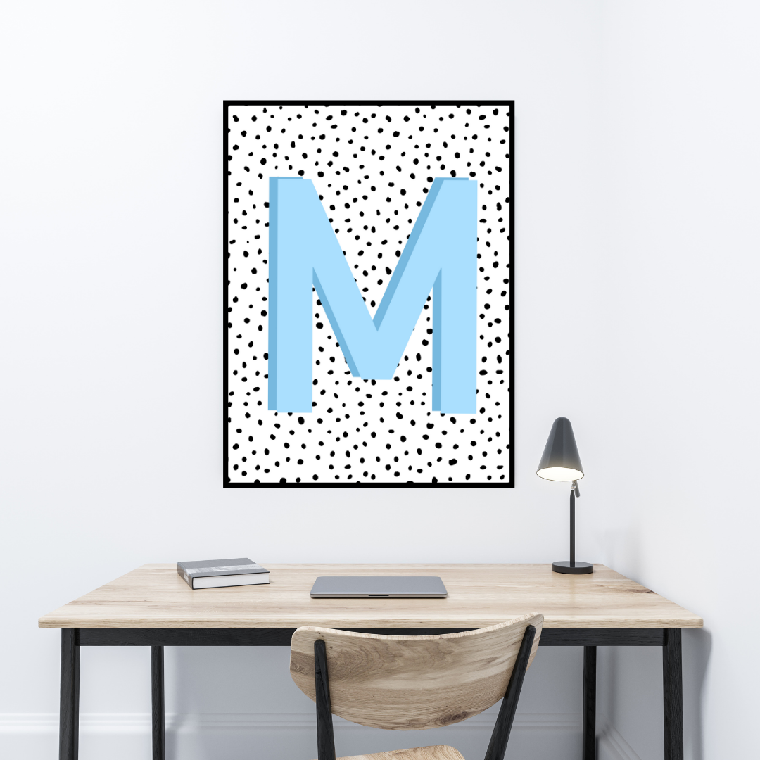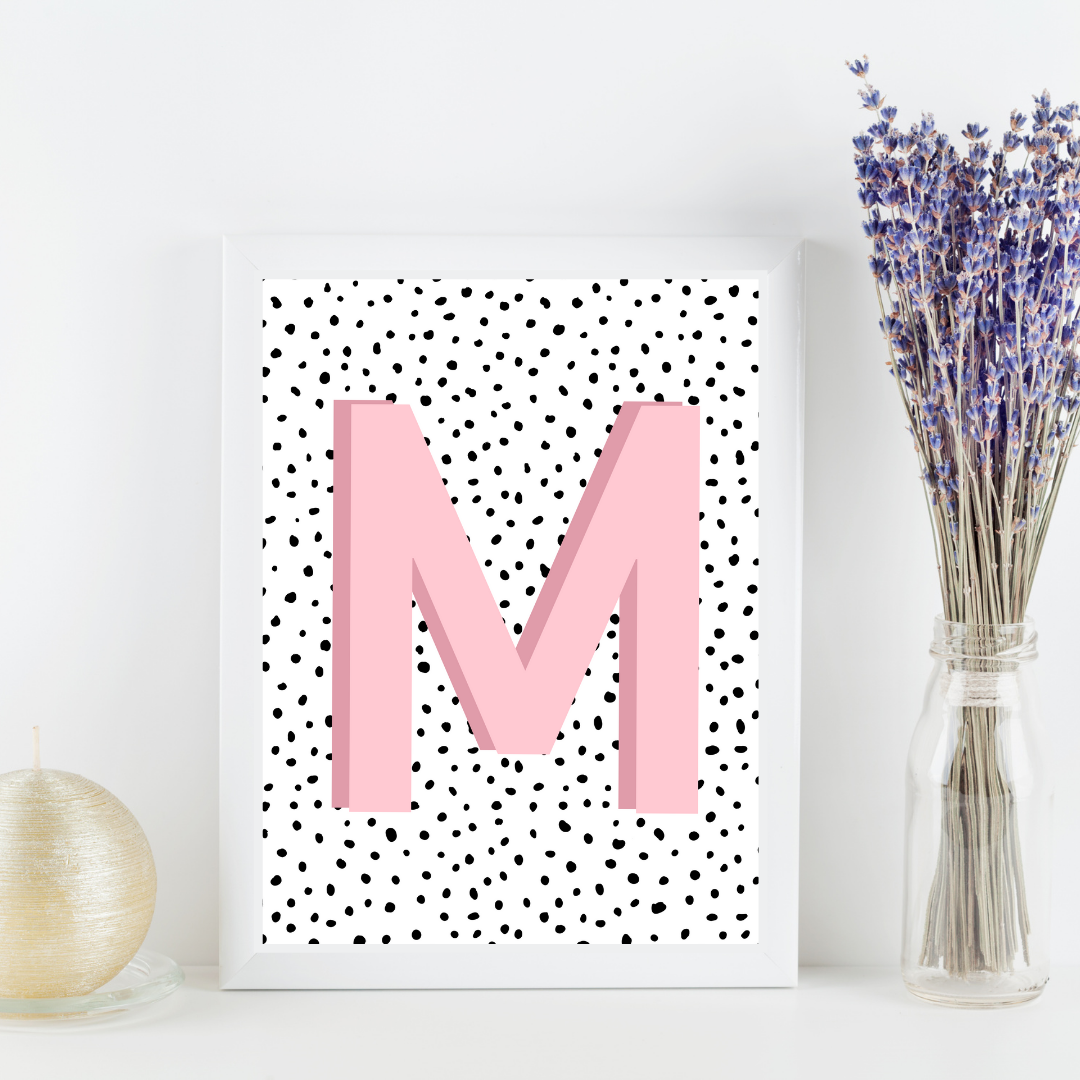 Initial Letter M Art Print | First Letter | Name Print | Dots Art Print | Cute Room Ideas