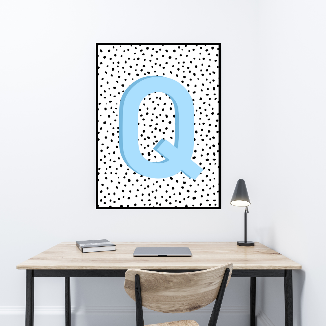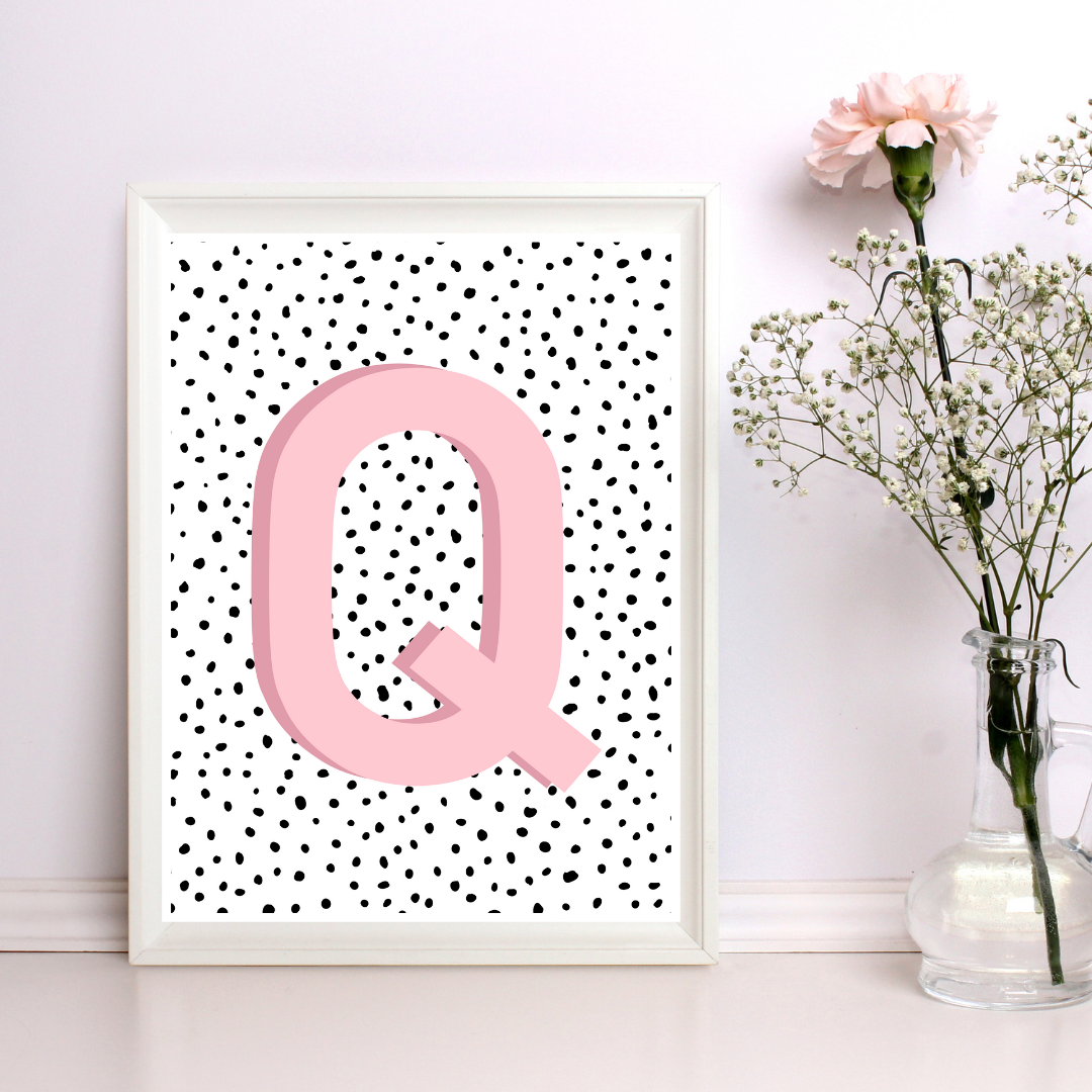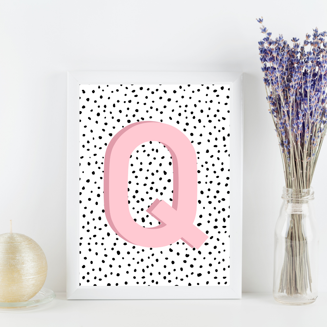 Initial Letter Q Art Print | First Letter | Name Print | Dots Art Print | Cute Room Ideas