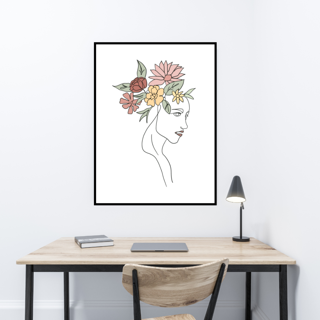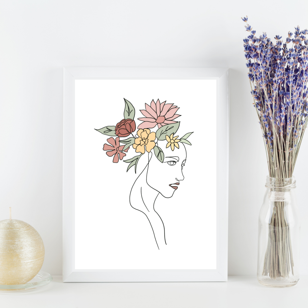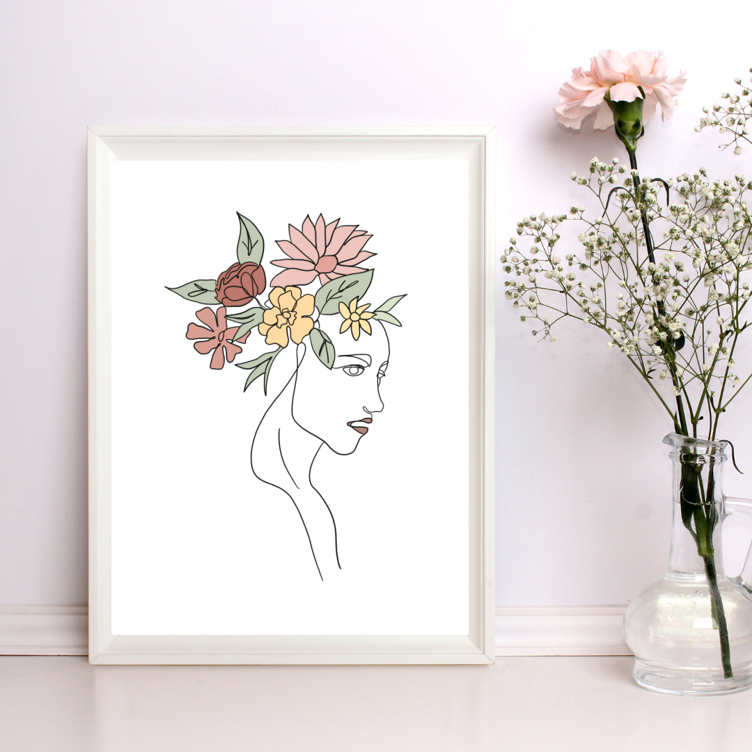 Elegant Women in Spring Minimalist Art Print | Home Decor | Minimalist Drawing | Room Ideas | Flowers Art