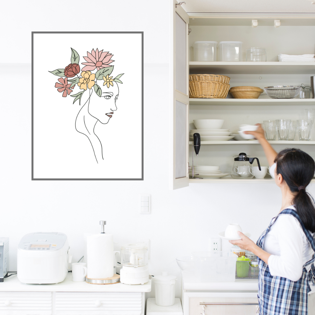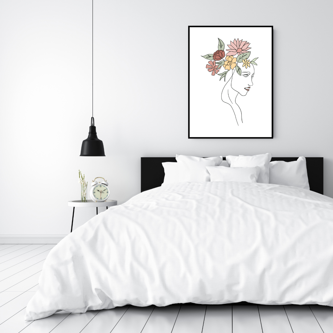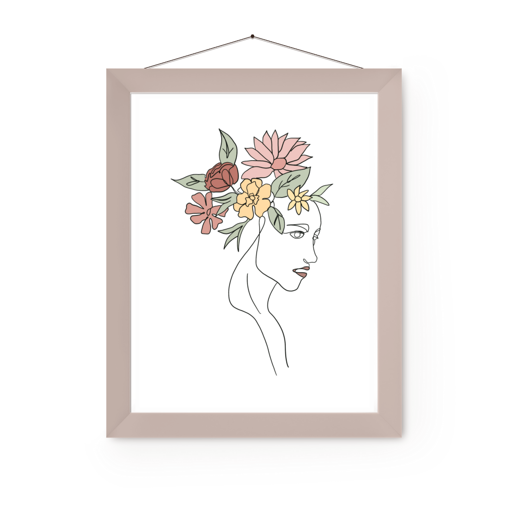 Elegant Women in Spring Minimalist Art Print | Home Decor | Minimalist Drawing | Room Ideas | Flowers Art