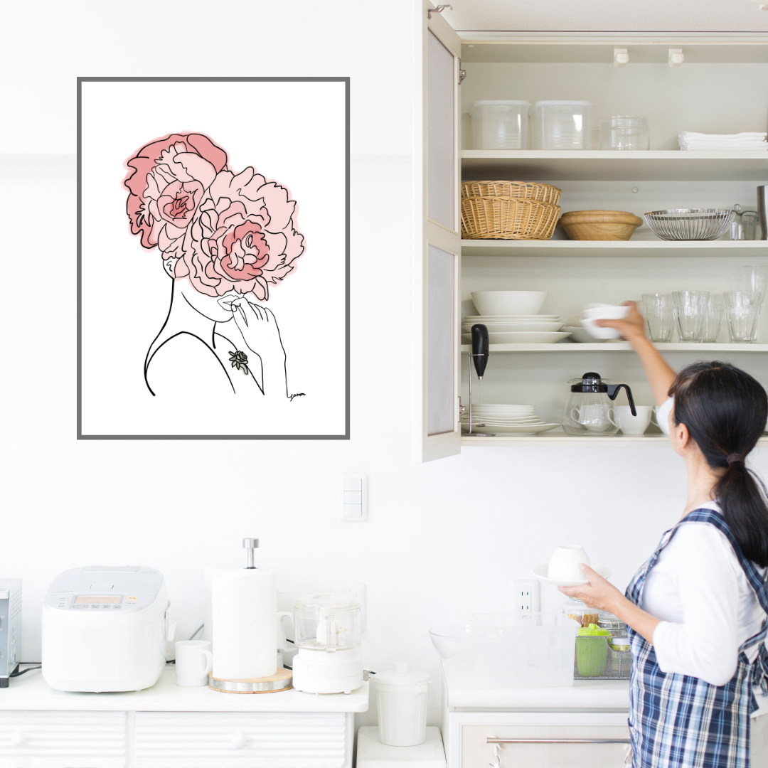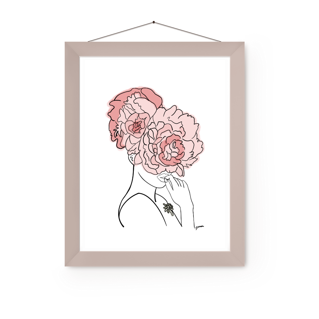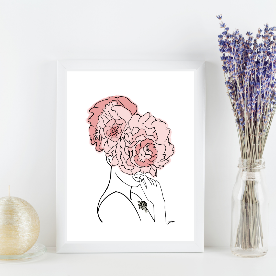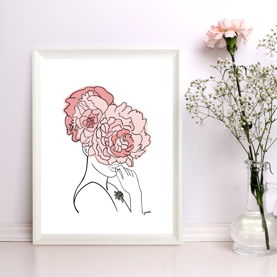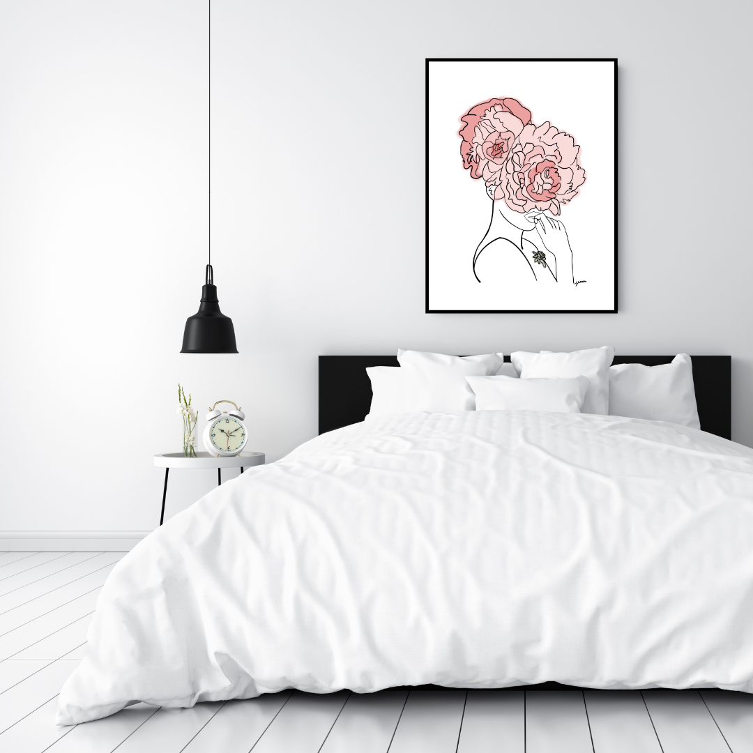 Pink Crown Flowers Art Print | Home Decor | Minimalist Drawing | Room Ideas