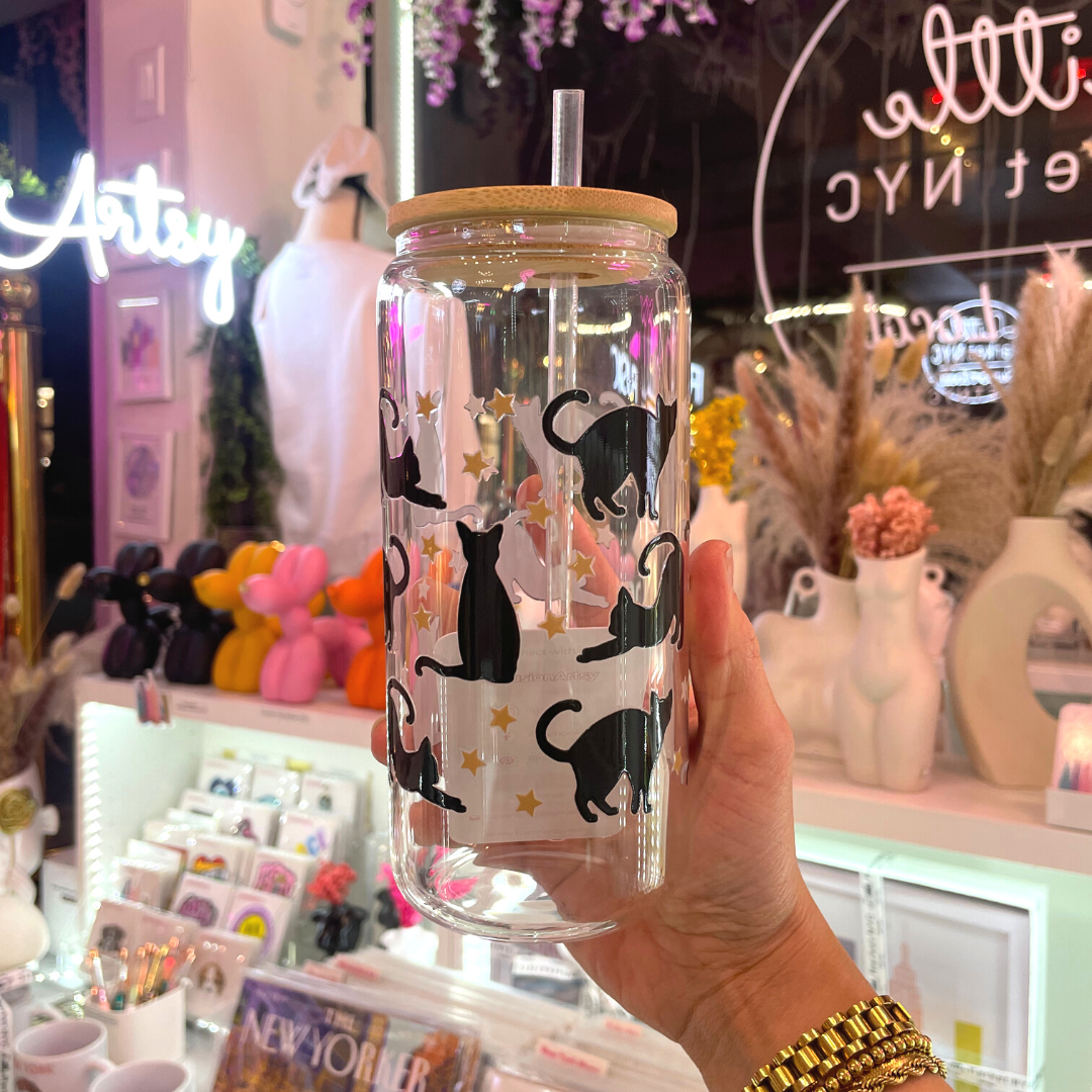 Sip in style with these unique Cats Lover Cups! Perfect for iced drinks, these glass cups are designed with cat lovers in mind. Made in New York, each cup is a true work of art. Add quirky charm to your drinkware collection today! (Meow!)