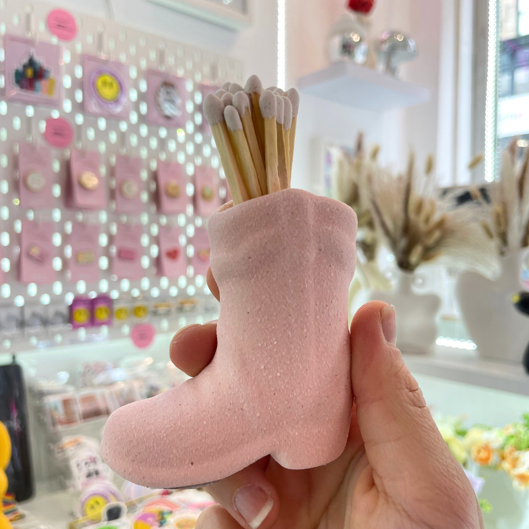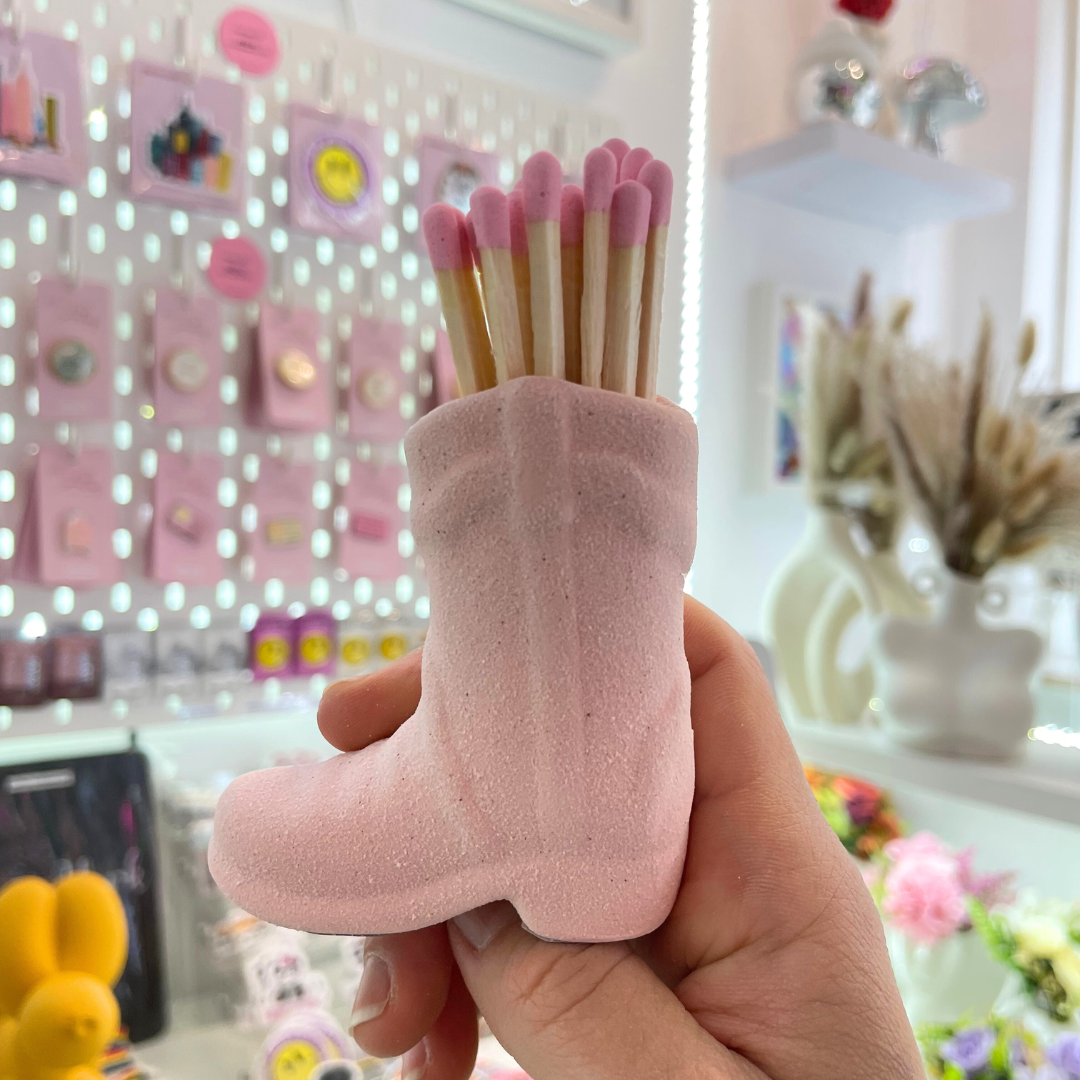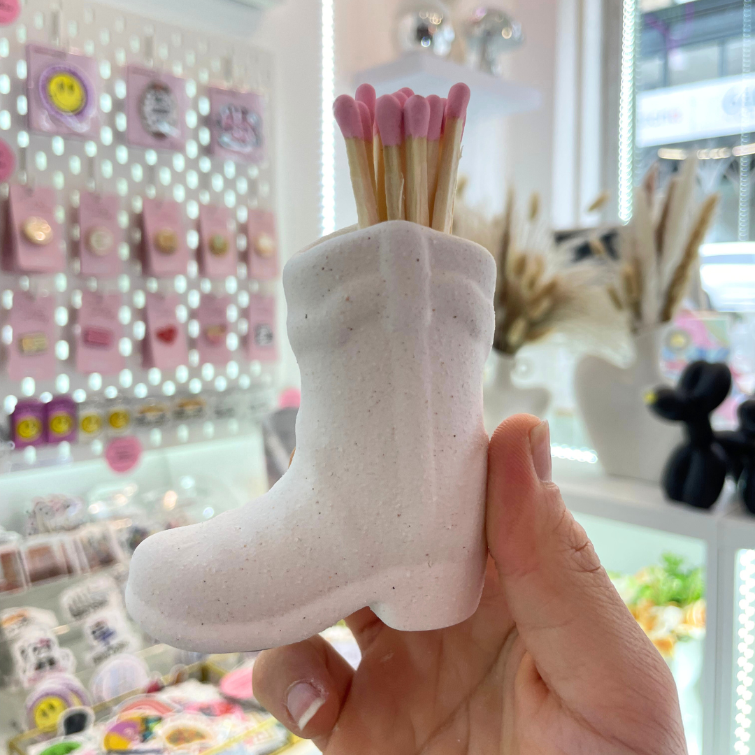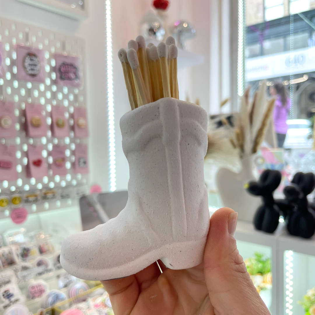 Keep your matches stylishly stored with this Cowboy Boots Match Holder. Made from durable ceramic, it's the perfect addition to any Western-themed decor. Now you can light up that campfire with ease and a touch of personality. Yeehaw!