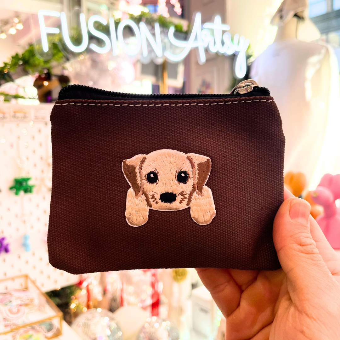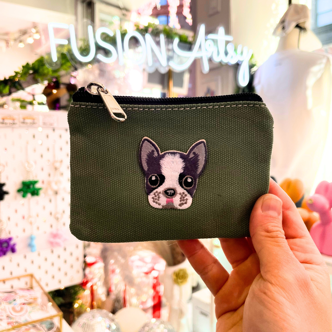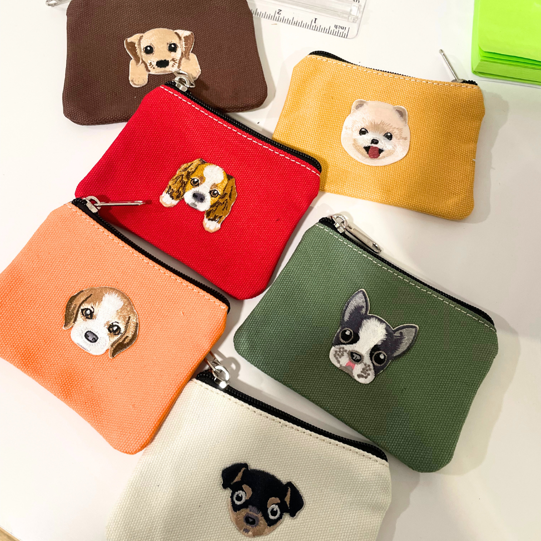 These versatile bags double as a wallet or coin bag. Choose from our Patches of New York or personalize with your favorite doggie with us. A playful and practical accessory for any quirky fashionista!