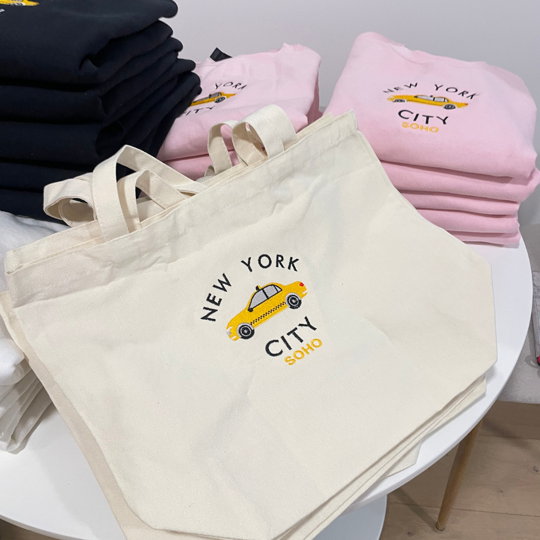 Regular price $40.00Get ready to turn heads with our Embroidered NYC Taxi Tote Bag! Made in NYC with eco-friendly materials, this tote is both stylish and sustainable. Plus, it's washable for easy cleaning. Show off your love for the Big Apple while also being kind to the planet. What a win-win situation!