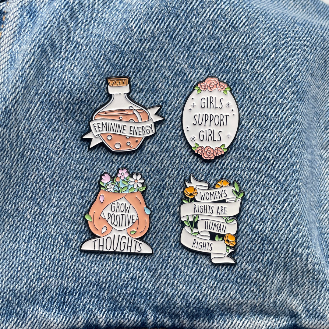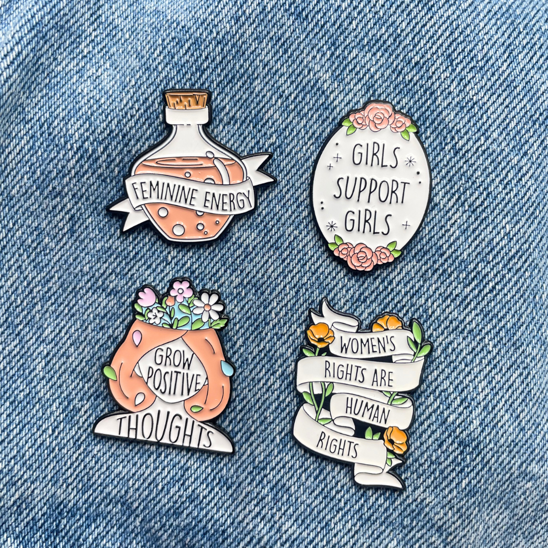 Unleash your feminine energy and empower women with these quirky pins, perfect for backpacks and jackets.