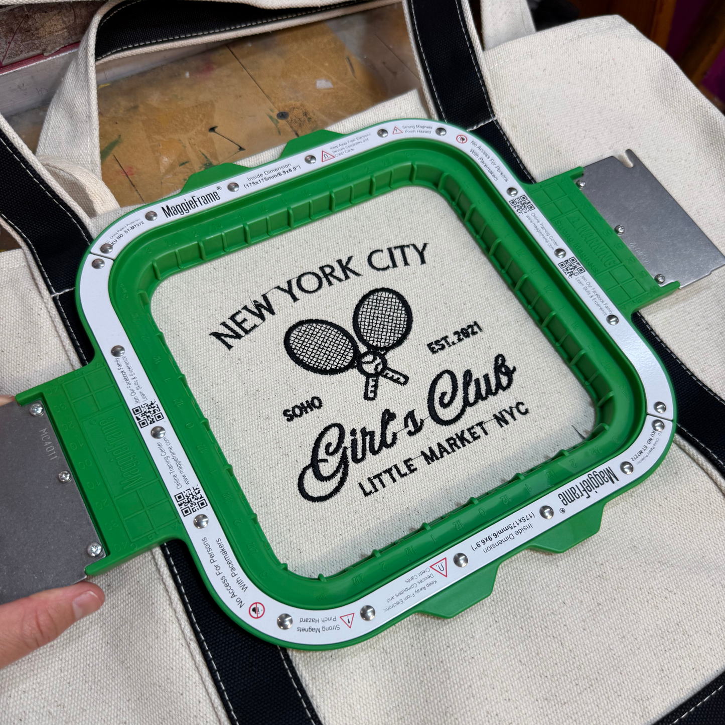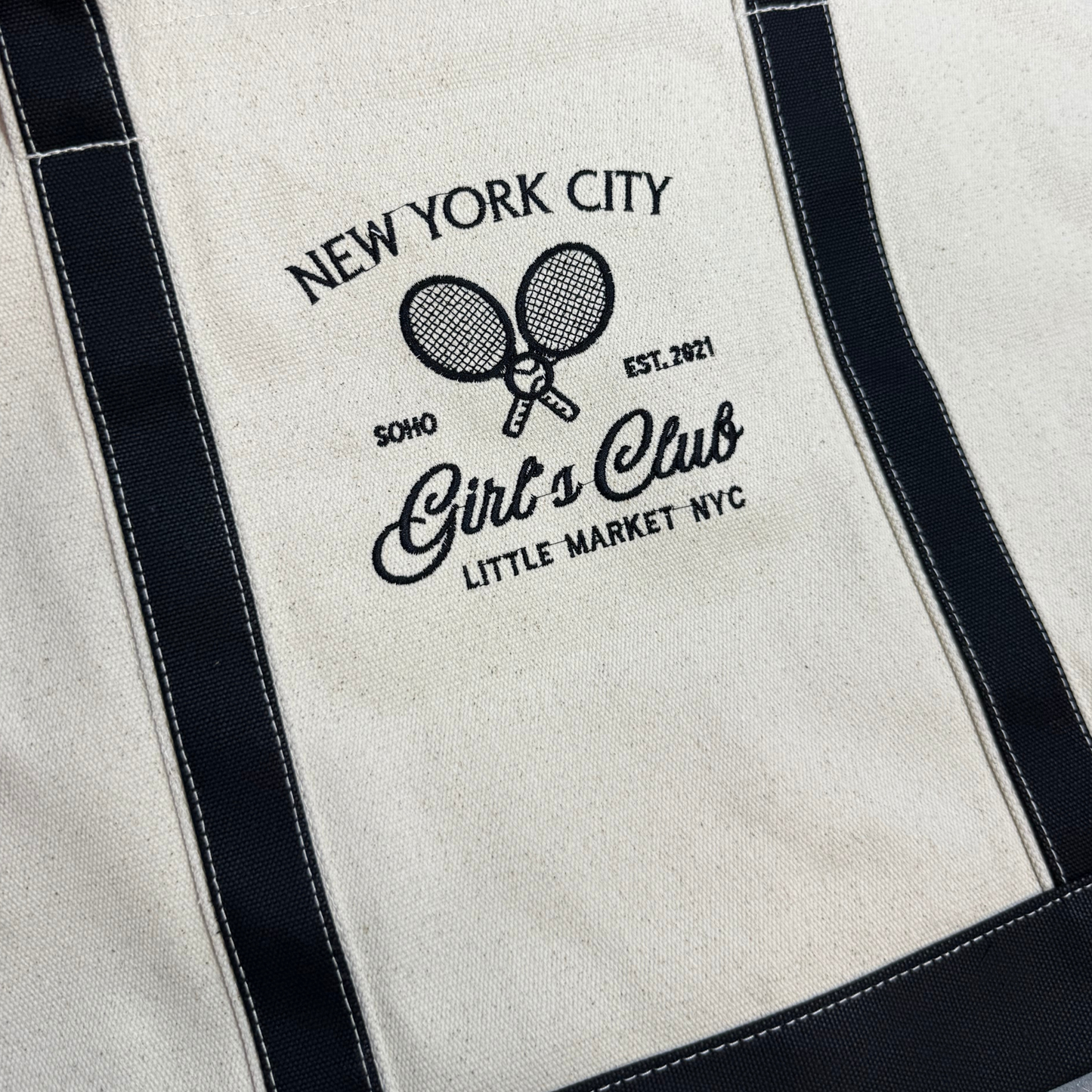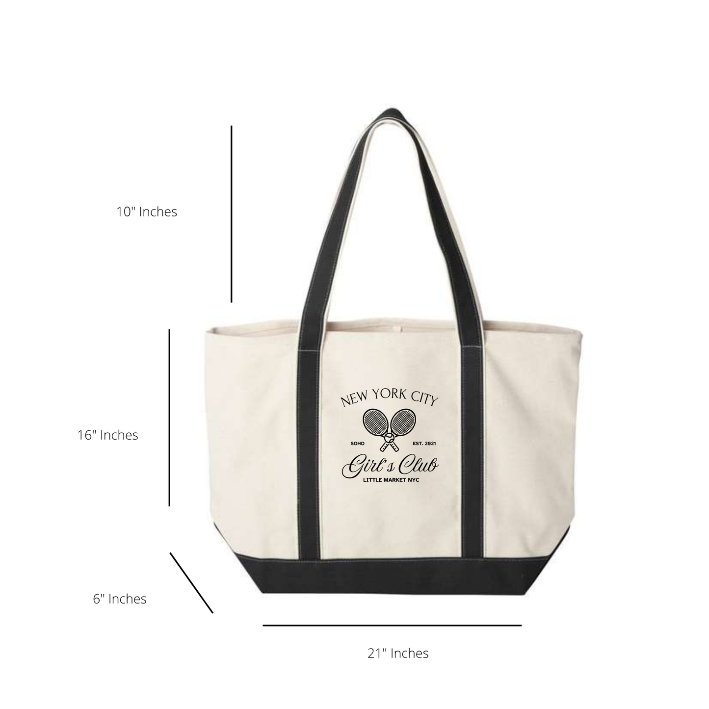 Carry your essentials in style with the Girl's Club Deluxe XL Tote! Made from extra thick, sustainable cotton canvas, this roomy tote is perfect for beach days, shopping sprees, or wherever your adventures take you.