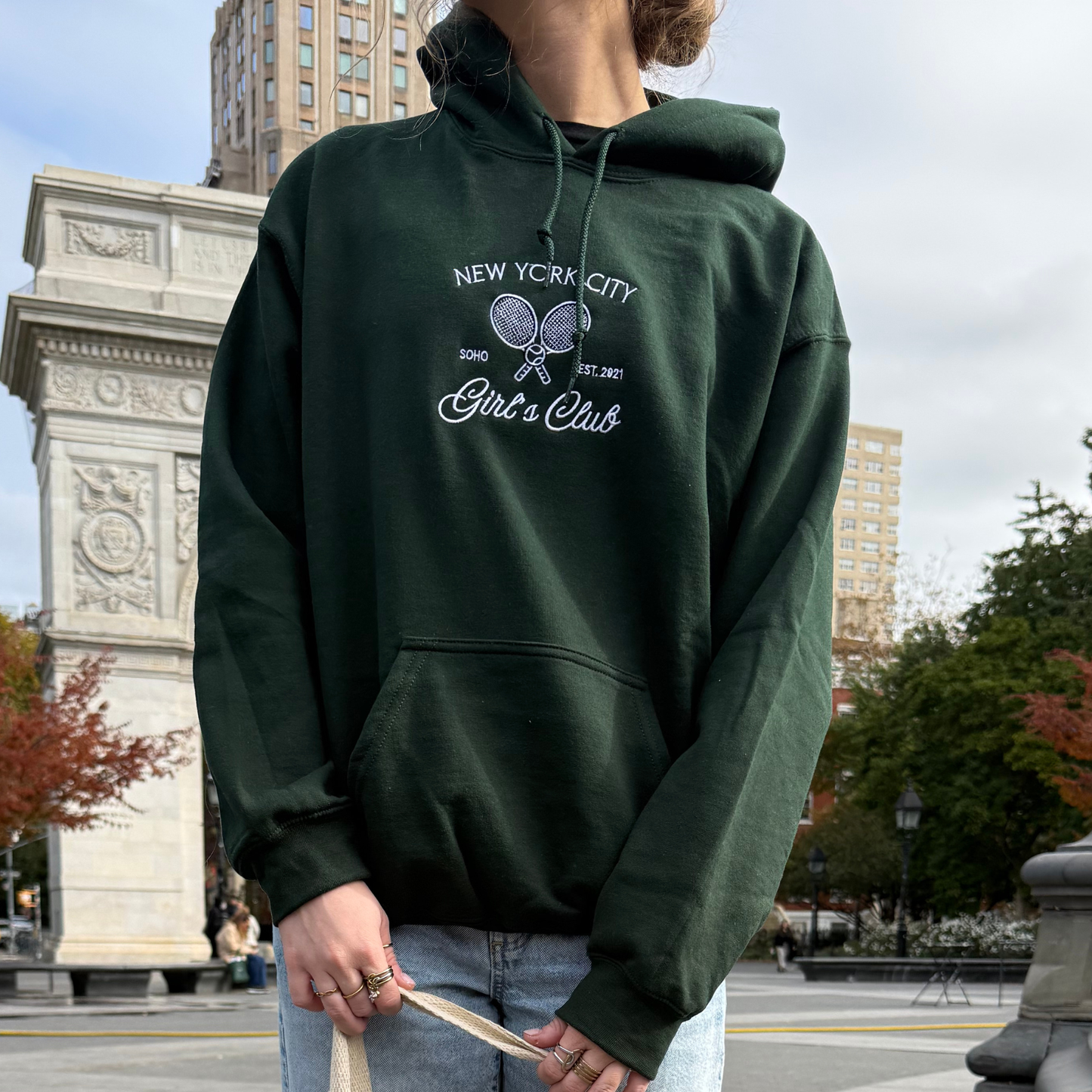 Serve up style with this Girl's Club Hoodie, designed for tennis enthusiasts who love NYC vibes. Soft, cozy fabric keeps you comfortable whether you're cheering from the sidelines or lounging between matches. The playful design celebrates your passion for the game and the city that never sleeps. Perfect for casual wear, practice days, or showing off your tennis spirit in the most fashionable way possible. Lightweight yet warm, this hoodie is your new go-to piece for looking effortlessly cool.