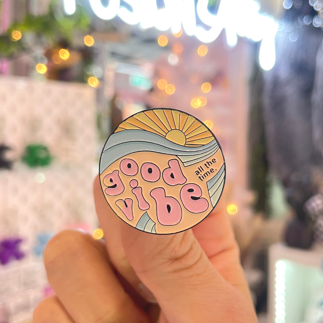 Make a statement everywhere you go with this magical Good Vibes pin! Show the world some love with these hippie-inspired designs in pastel colors that will look great on backpacks, jackets, and everything in between. Spread the peace & positive vibes!