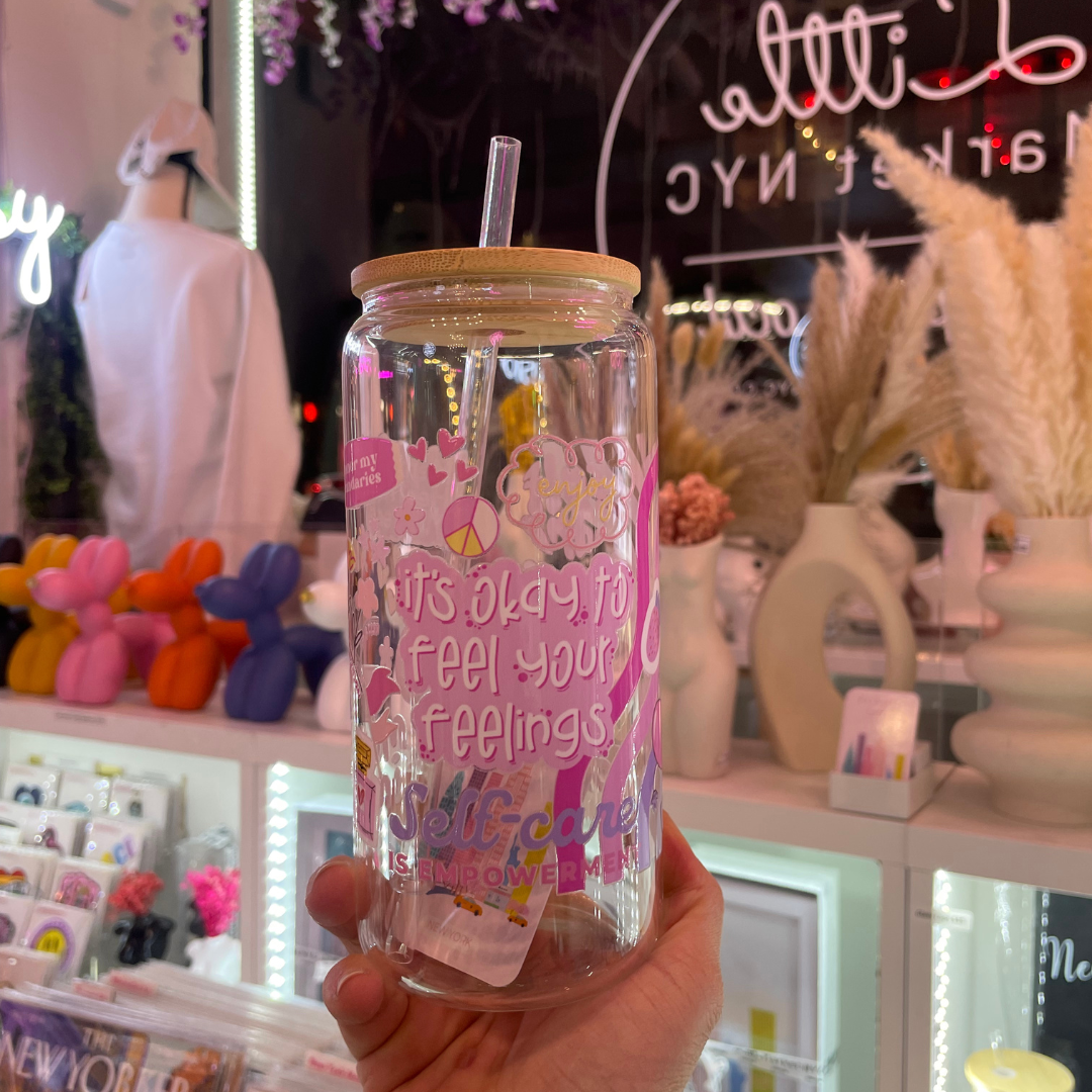 Feel all the feels with our It's Okay to Feel Your Feelings Cup! Sip on positive vibes while enjoying your favorite iced drinks. Made in New York, this glass cup is perfect for her. Embrace your emotions in a quirky and playful way with this cup.