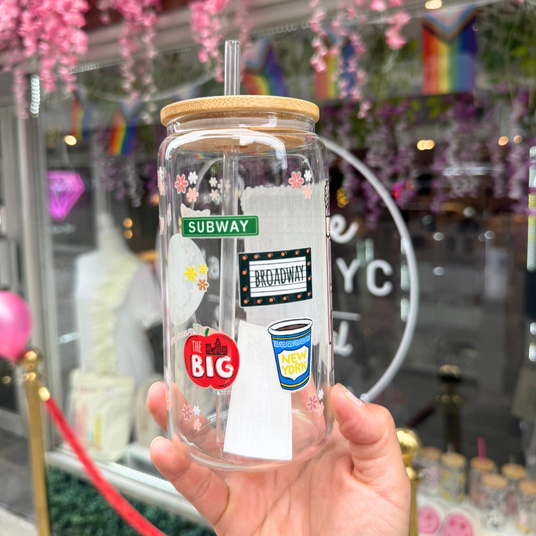 Sip your iced drink in style with these New York Glass Cups. Featuring iconic places of NYC, each cup is proudly made in the city that never sleeps. Show off your love for the Big Apple with every refreshing sip!
