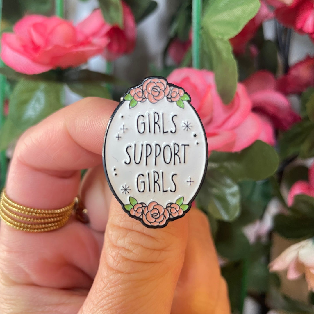 Ready to show off your support for your girls? This fun enamel pin is just the thing!