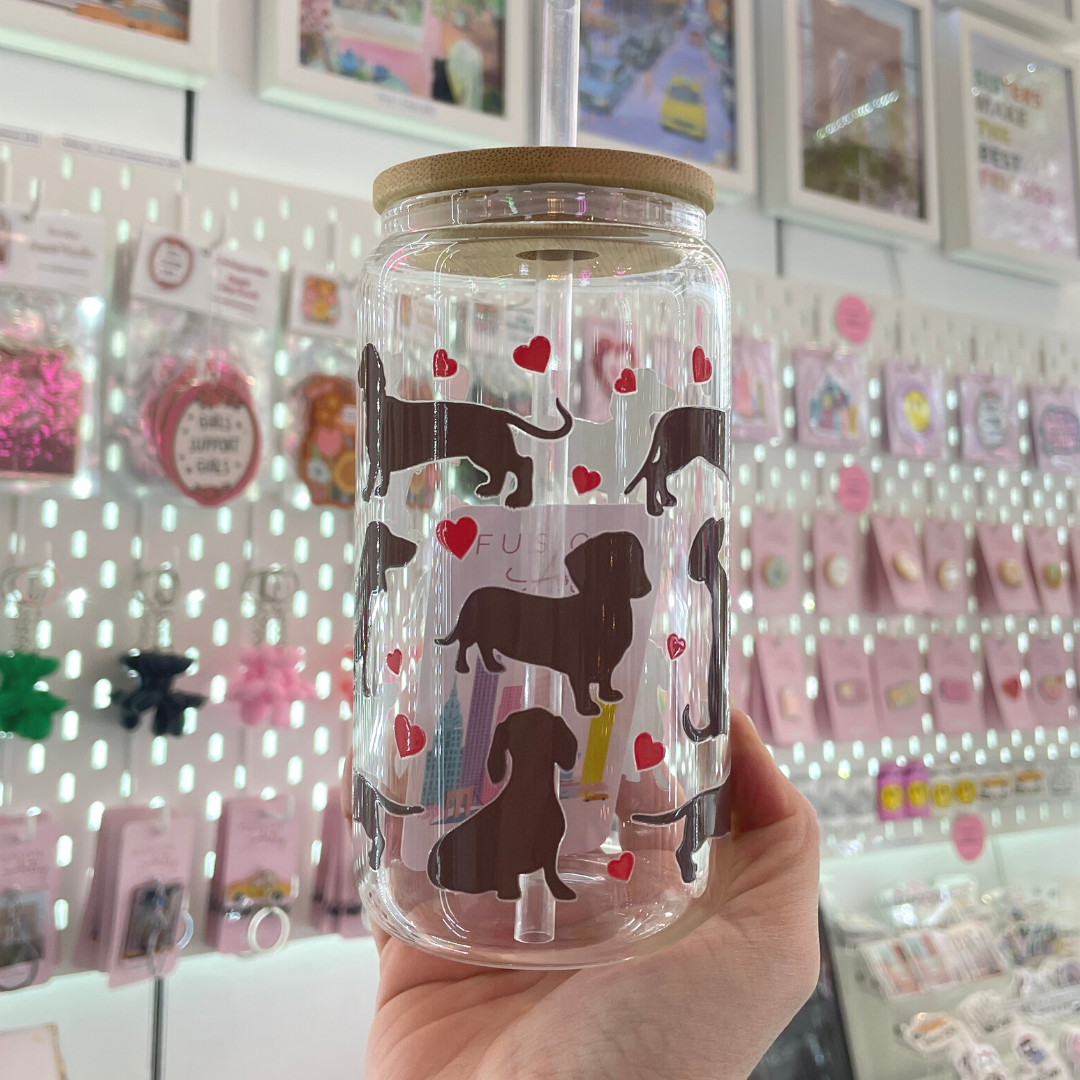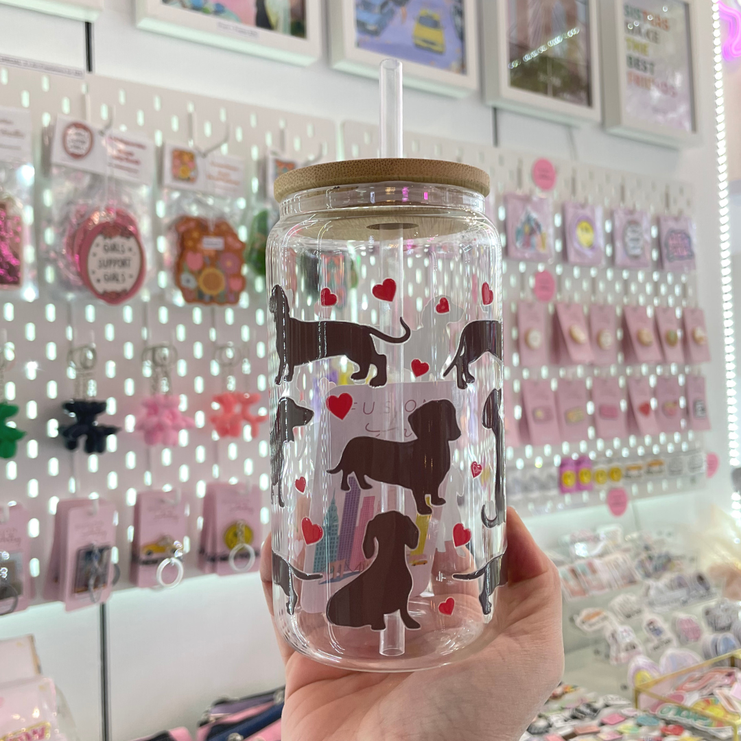 Add some puppy love to your morning routine with our Doggie and Hearts Glass Cup! The perfect gift for dog lovers, this cup will bring joy to your daily cup of coffee. Made for her, this glass cup is both playful and practical.