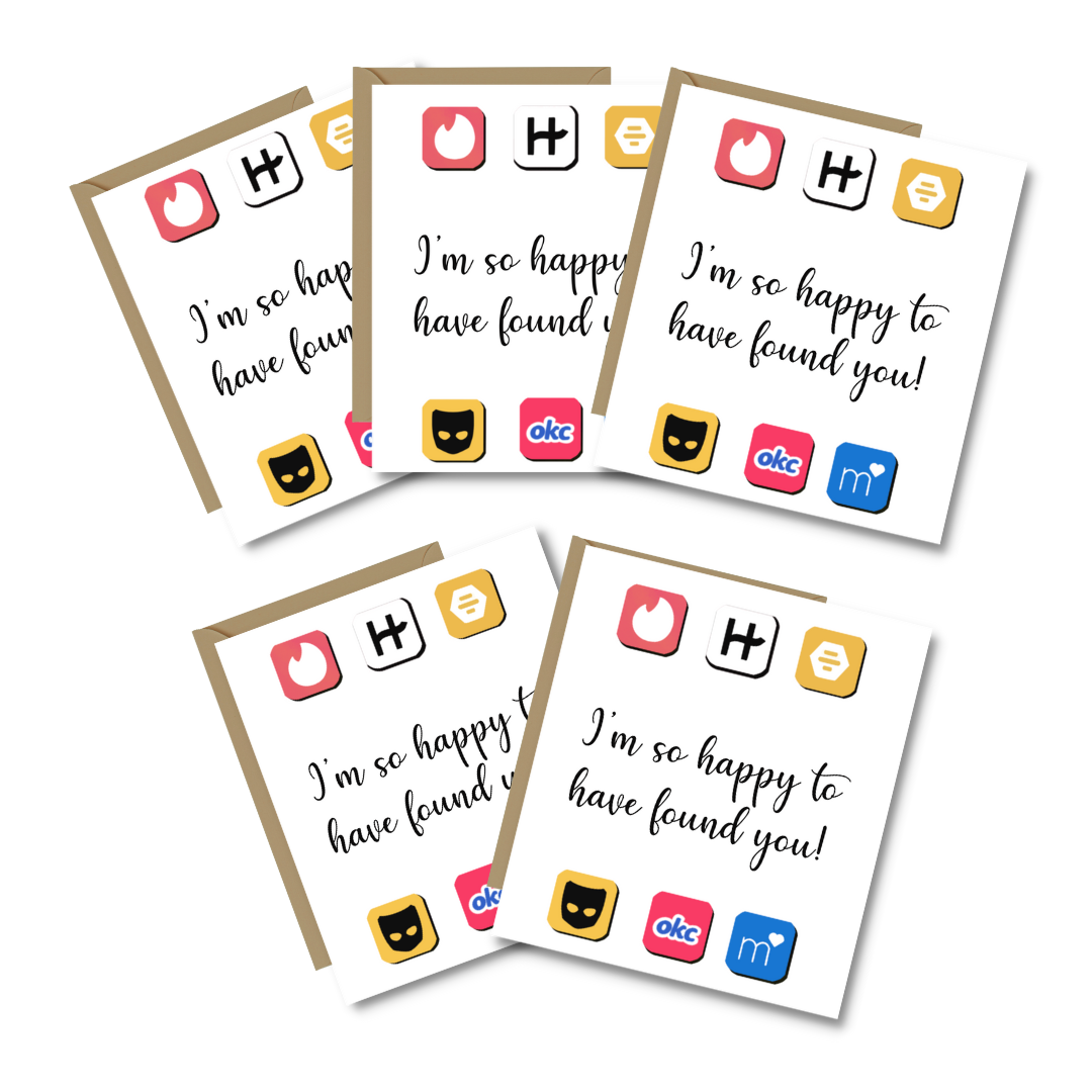 Woo-sah! You've found your true love with this one-of-a-kind "So Happy to Have Found You" card! Featuring all the LGBT love, this card is perfect for when you want to express those warm, fuzzy feelings. Show someone special you care with this romantic dating app card!