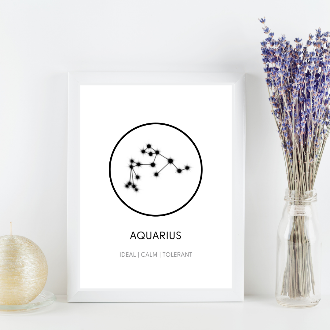 Aquarius Sign Art Print | Home Decor | Zodiac Art Decor | Room Ideas | Perfect Gift