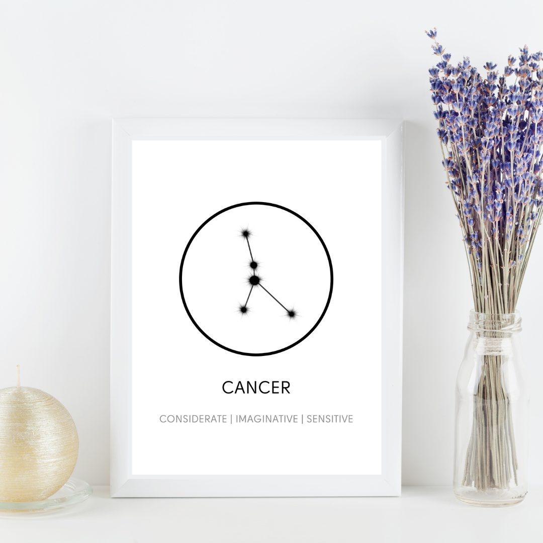 Cancer Sign Art Print | Home Decor | Zodiac Art Decor | Room Ideas | Perfect Gift