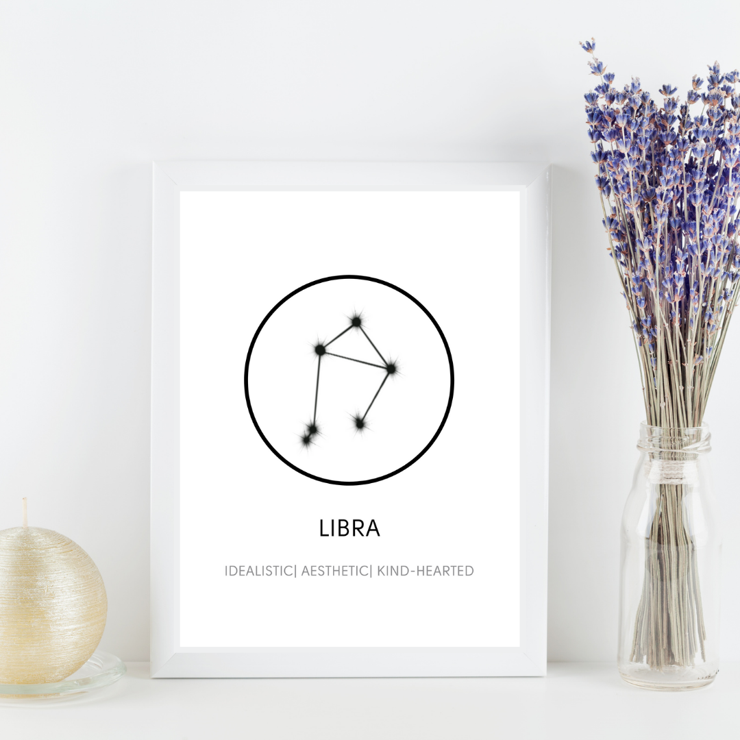 Libra Sign Art Print | Home Decor | Zodiac Art Decor | Room Ideas | Perfect Gift