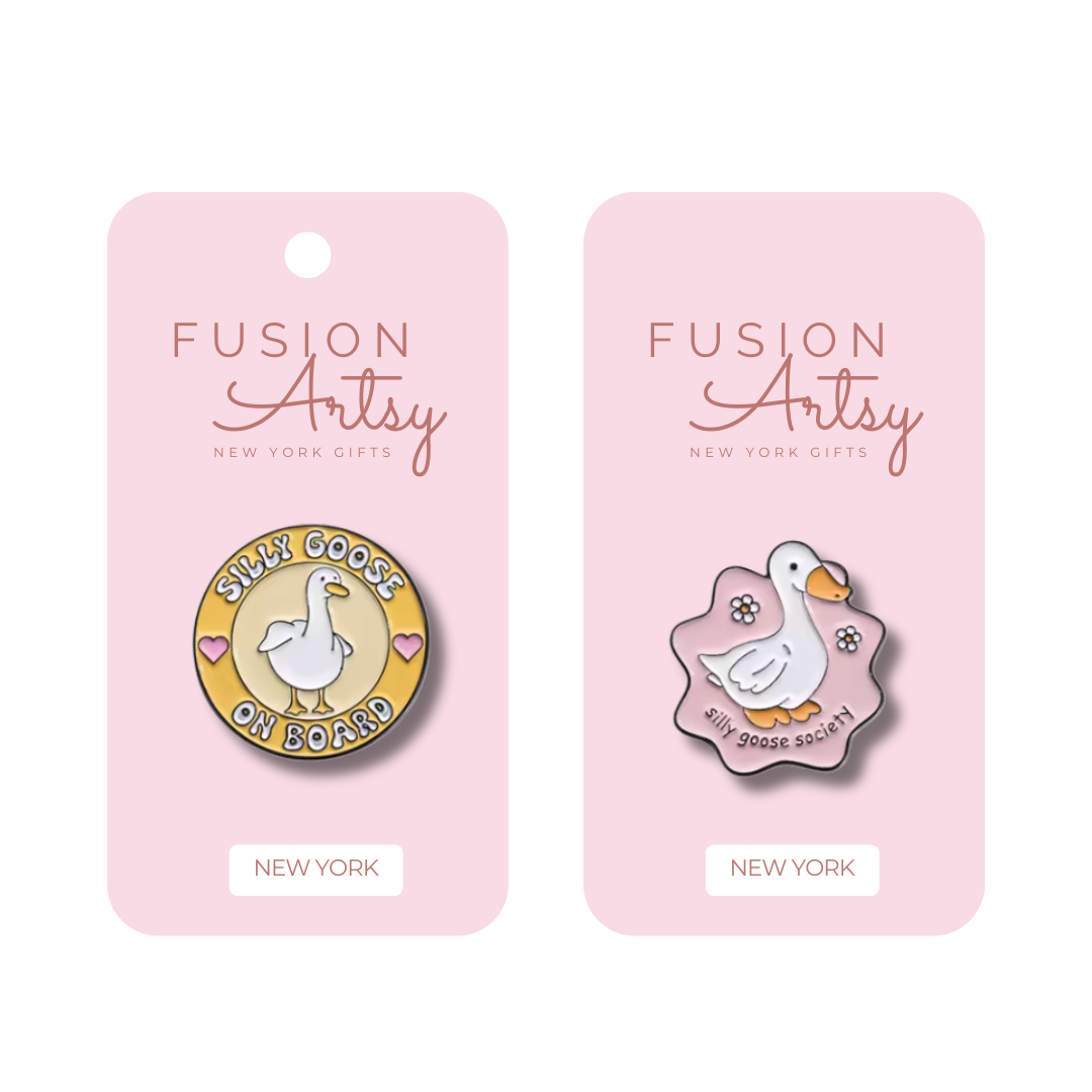 These adorable enamel pins are perfect for goose enthusiasts and animal lovers everywhere. Each pin features a charmingly silly goose design that's sure to make you smile. Whether you're pinning them to your backpack, jacket, or collection display, these cute and quirky accessories add instant personality to any outfit or space. Material: Zinc Alloy