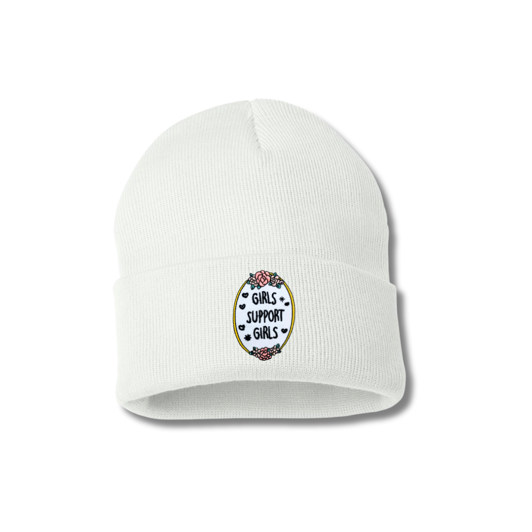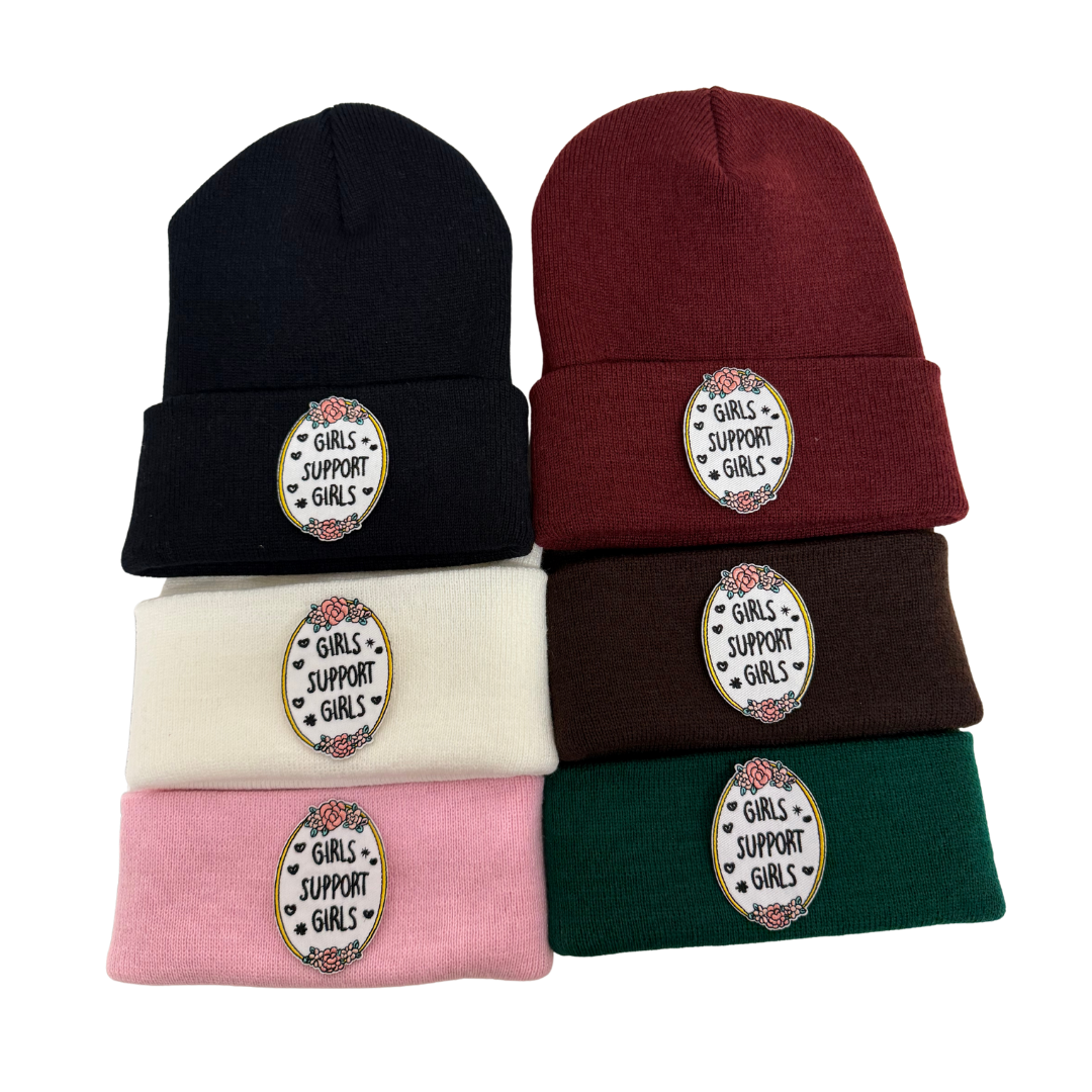 Celebrate sisterhood with our Girls Support Girls Beanie! This soft, snuggly beanie features an eye-catching custom patch that spreads a message of unity and uplift. Crafted with care in NYC, it's the perfect accessory for showing your support in style.