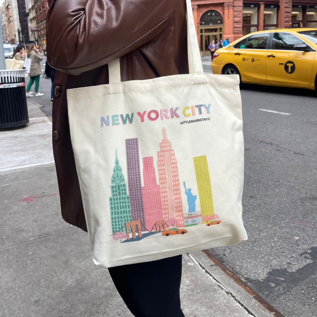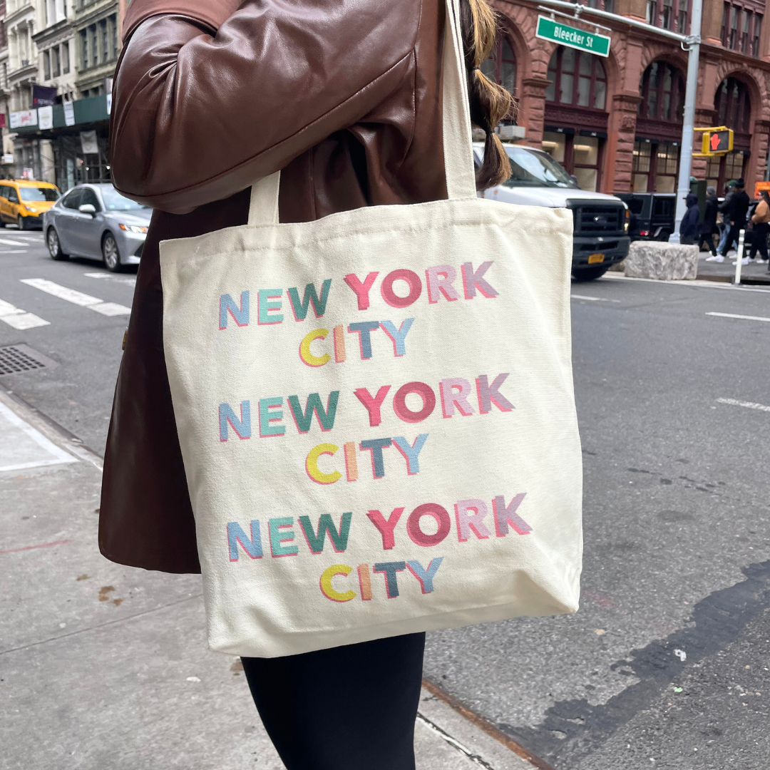 Eco-friendly meets style with this New York City tote bag. Its colorful design will brighten up any trip, while the water-resistant material keeps your belongings safe. Perfect for the environmentally and fashion-conscious shopper on-the-go!