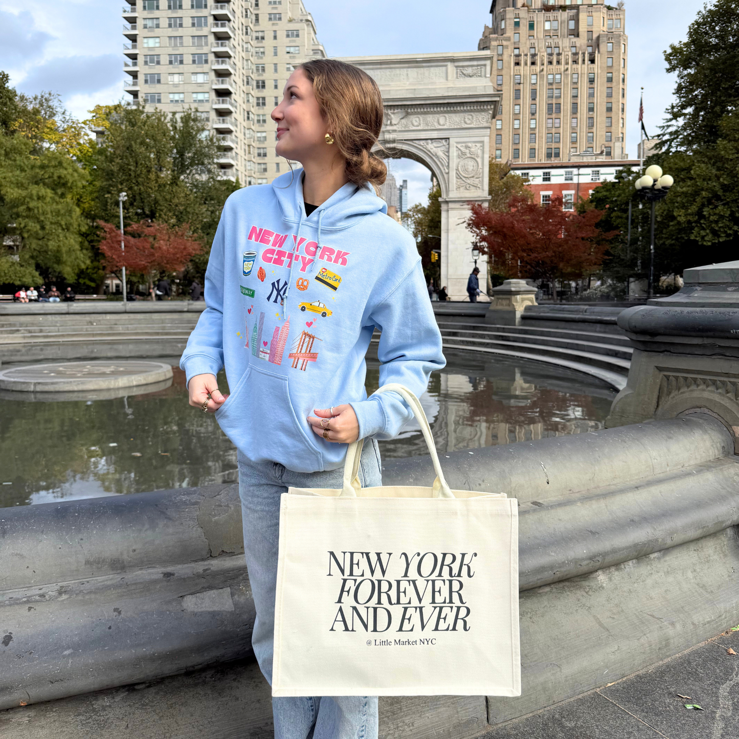 New York Forever and Ever Everyday Bag | XL Tote Bag Size | Design in NYC